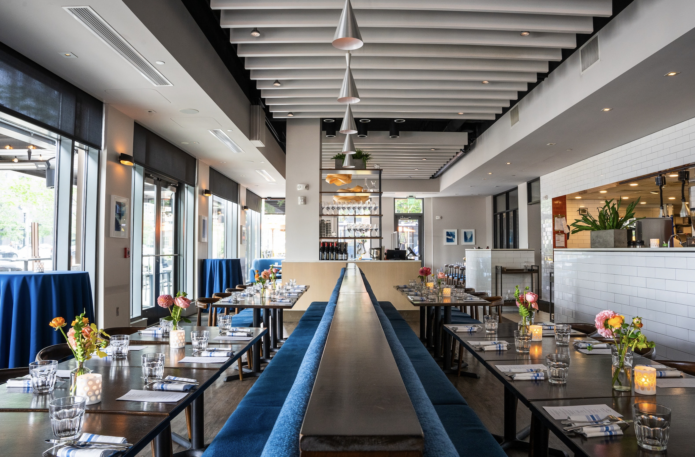 From the tucked away intimacy of our private room to the bustling energy of our main dining room, we offer a variety of spaces for you to celebrate any event. Our dynamic private dining room hosts 12 guests seated or up to 16 guests for a standing reception. It’s the ideal amount of seclusion and ambiance; with built in Apple TV, music, and windows that open onto the patio. If you’re looking for a larger gathering space our semi-private dining room and patios are ideal locations for 15-45 guests. The restaurant in its entirety is also available to reserve with seating for up to 120 guests along with space for cocktails and hors d’oeuvres.