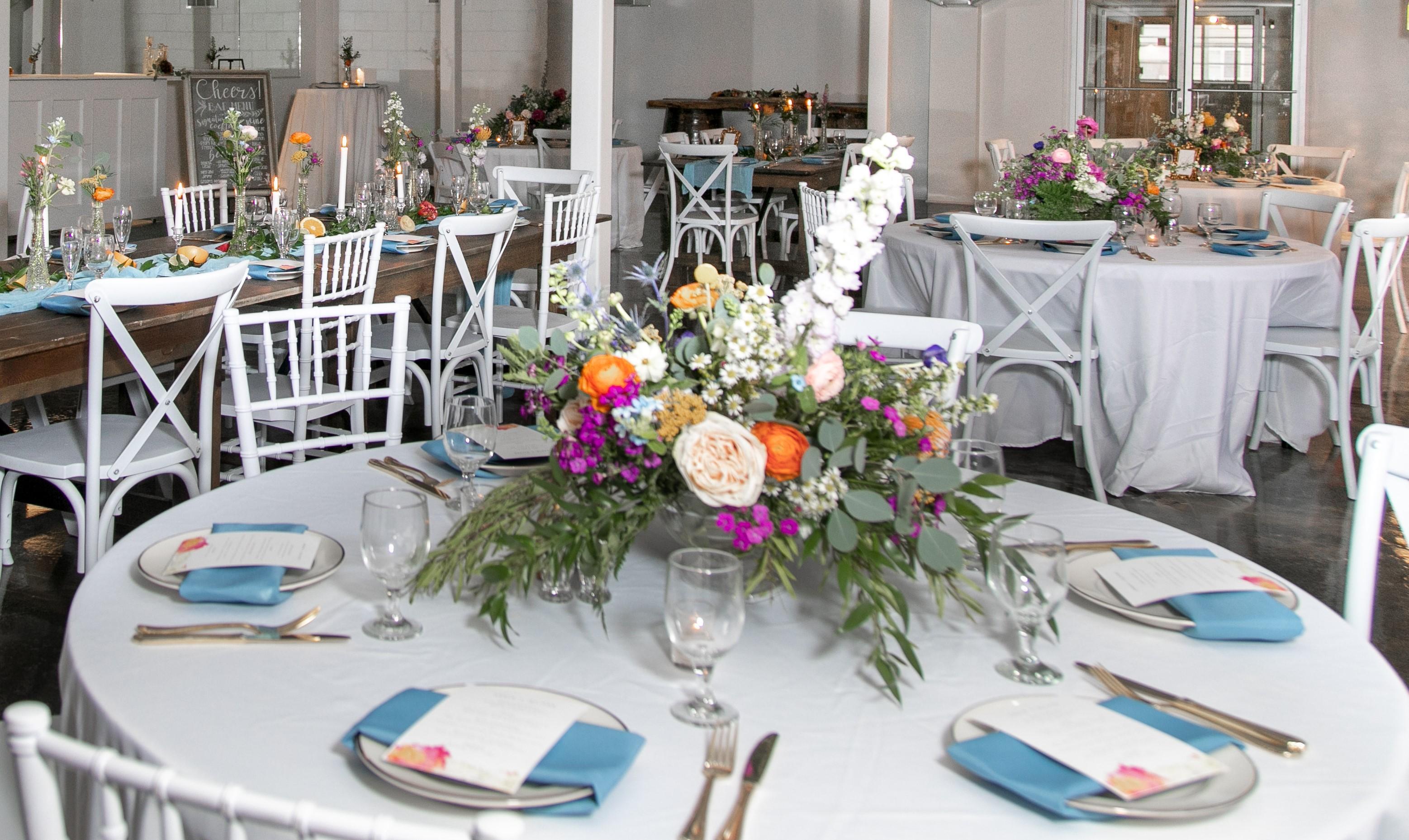 Perched on the second floor, Coastal 59 Venue exudes industrial charm with black-trimmed windows that flood the space with natural light. Its neutral color palette allows for any wedding style and color scheme. Enjoy lush greenery in spring and summer, with stunning bay views in fall and winter