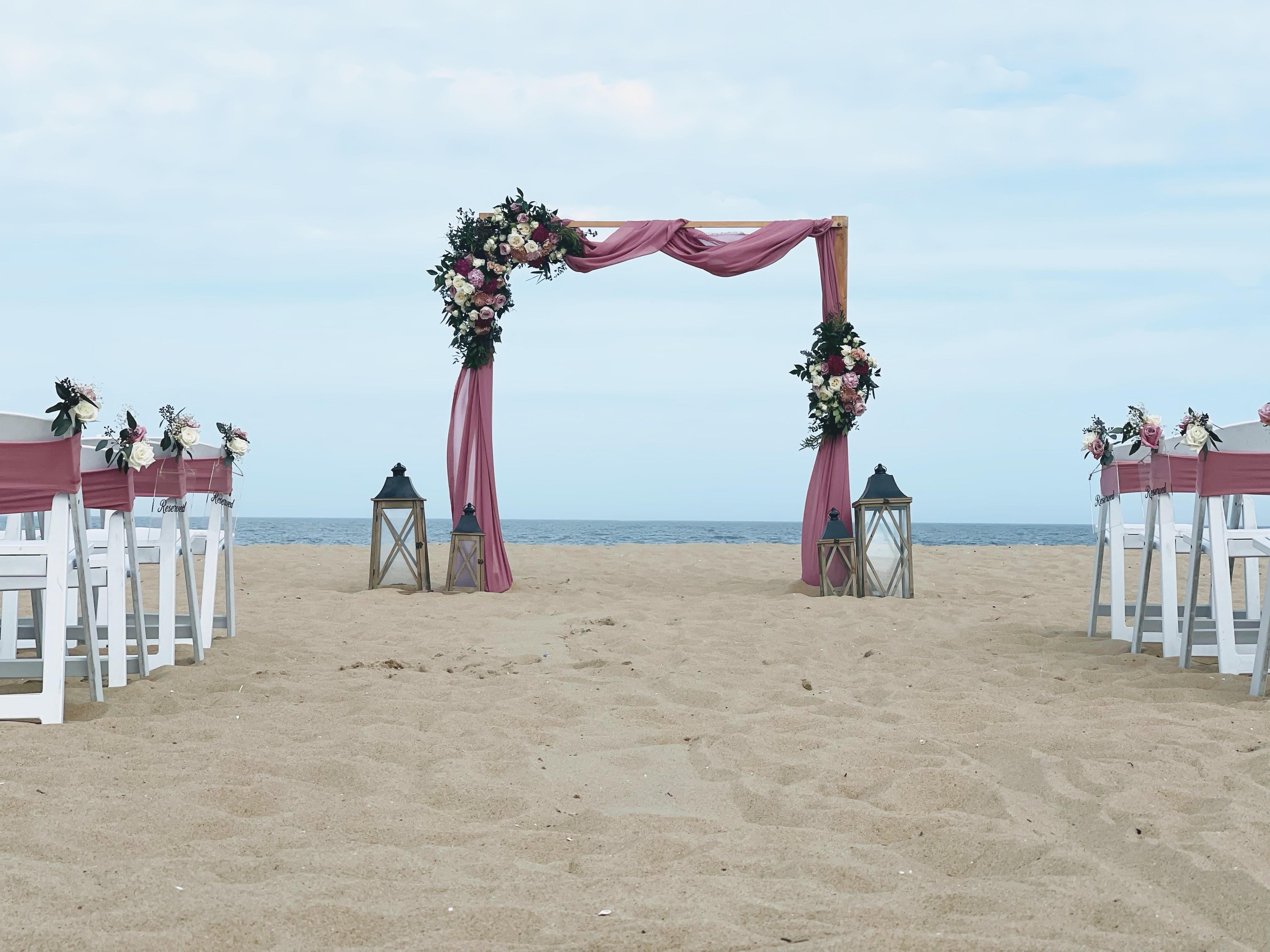 What’s Included: ✔ Professional Wedding Planner + Personal Planning Portal ✔ Non-Denominational Officiant ✔ Professional Beach Wedding Photographer with digital image file, full printing rights ✔ 3-Post Wedding Arbor with your choice of 8+ premium floral décor options ✔ Coordinated aisle décor and floral enhancements ✔ Beach Ceremony Coordinator ✔ Full set-up & break-down team ✔ Includes 4 chairs (additional $5 per chair) Difference from Basic Enhanced floral styling, a larger arbor, aisle décor