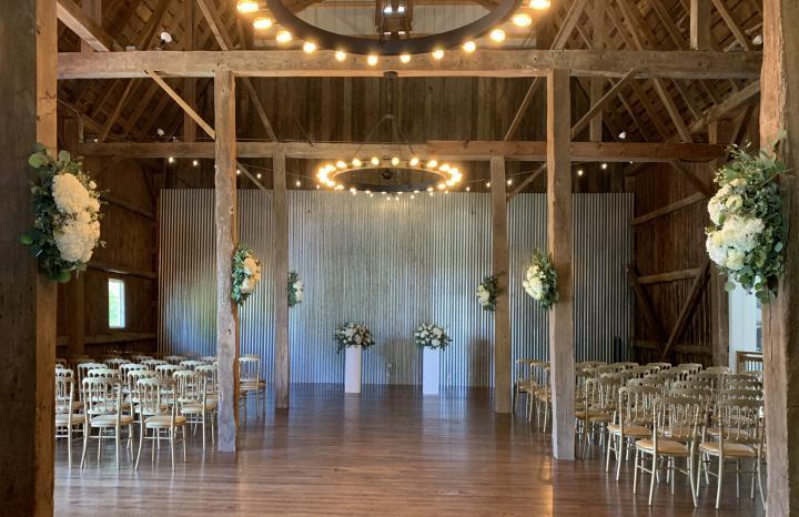 The barn, originally built in 1888 still maintains the exposed wood beams, weathered plank walls, and a soaring vaulted ceiling displaying the gambrel roof. A beautiful setting for any event.