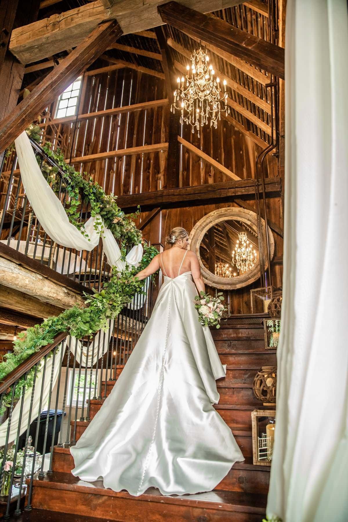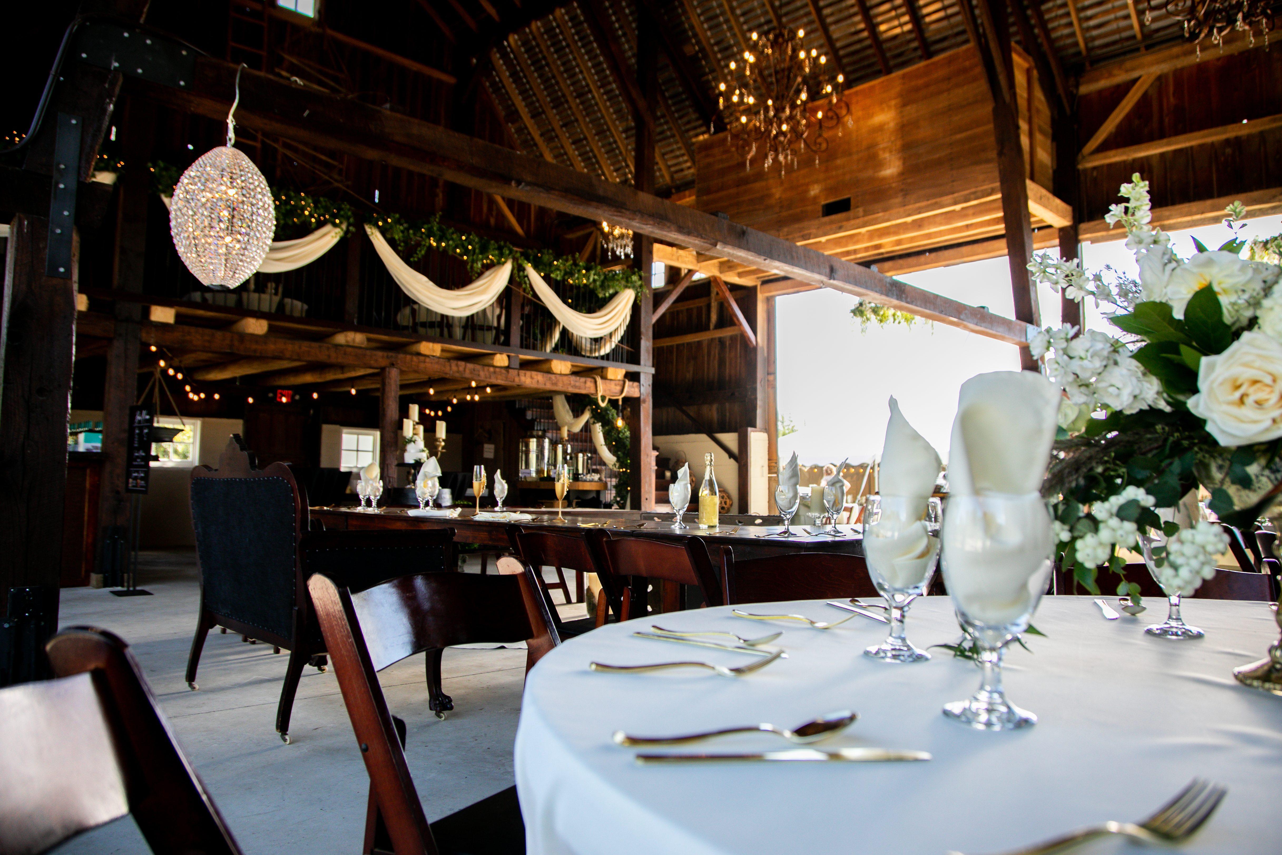 An idyllic farm setting with an enchanting and unspoiled elegance. Hand Hewn beams frame the barn accenting a soaring 40' ceiling. The exquisite 5' rubbed bronze chandeliers set the atmosphere unlike any other. A loft, an absolutely beautiful built in bar with live edge Black Oak slabs, and so much more, make this the perfect place to dance the night away under the vintage string lighting just outside the barn covering the dance floor and the optional tent if needed.