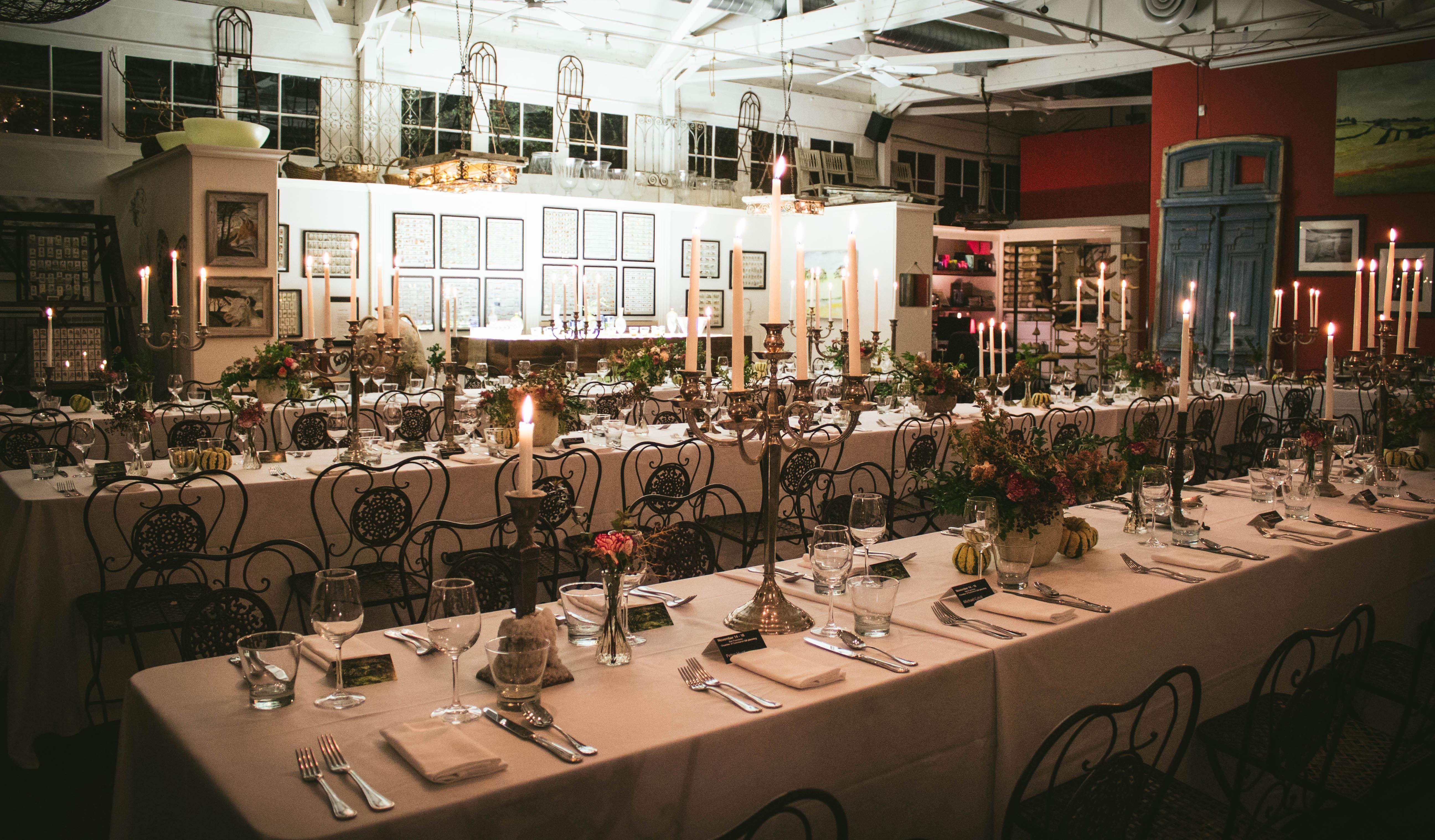 The Barndiva Wedding Package allows a dynamic use of all the rooms and gardens within a relaxed timeline that allows you to reveal spaces throughout the night. Guests move from ceremony under the heritage trees in our Main Gardens, through cocktail hour inside Studio Barndiva, to dinner under the lit arches in the Studio Gardens, and back to dancing inside Studio Barndiva, giving the option for extension of your event well into the night. Email info@barndiva.com for more package information.