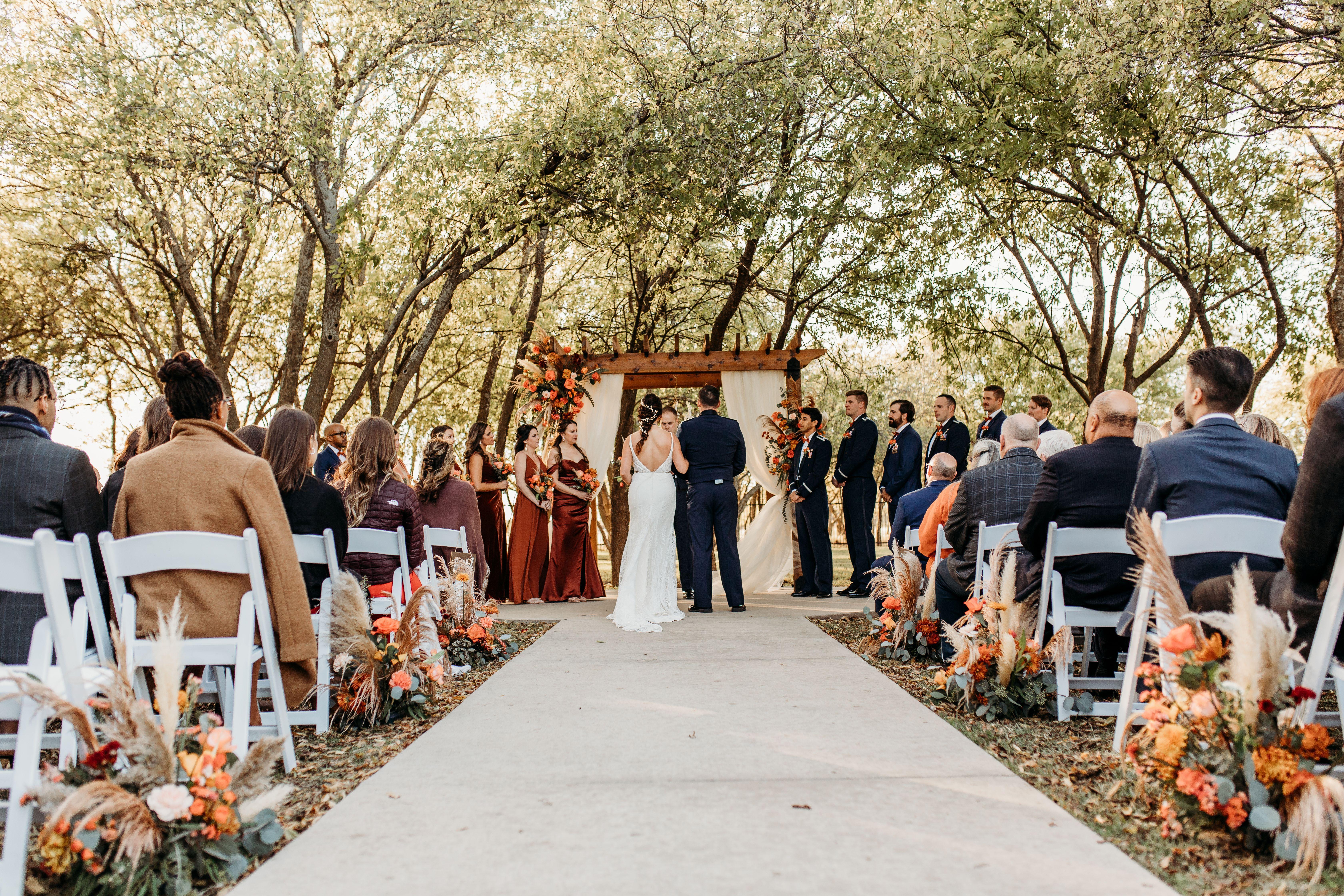 Nestled under the shade of majestic trees, this space offers a serene atmosphere for your vows. The wooden pergola is a charming focal point, creating a beautiful backdrop for your ceremony. Flanked by big wooden grand entry doors, the area exudes a sense of timeless romance, making it a perfect spot for a memorable exchange of vows. Surrounded by the natural beauty of the North Texas countryside, our outdoor ceremony area provides a tranquil and enchanting environment for your special day.