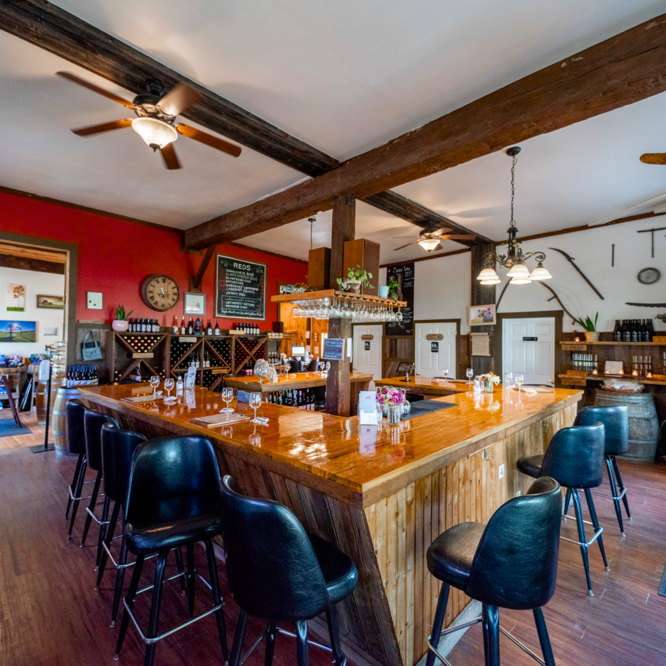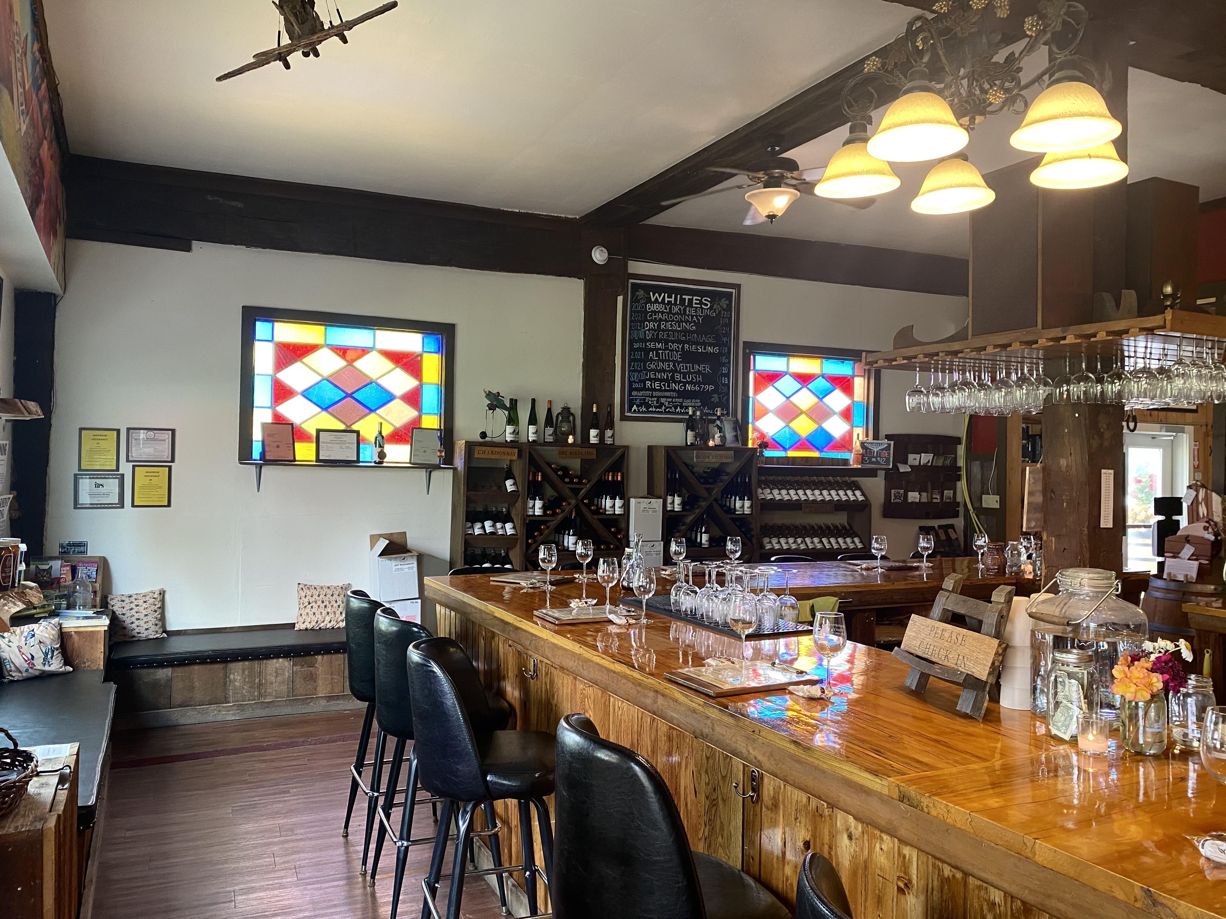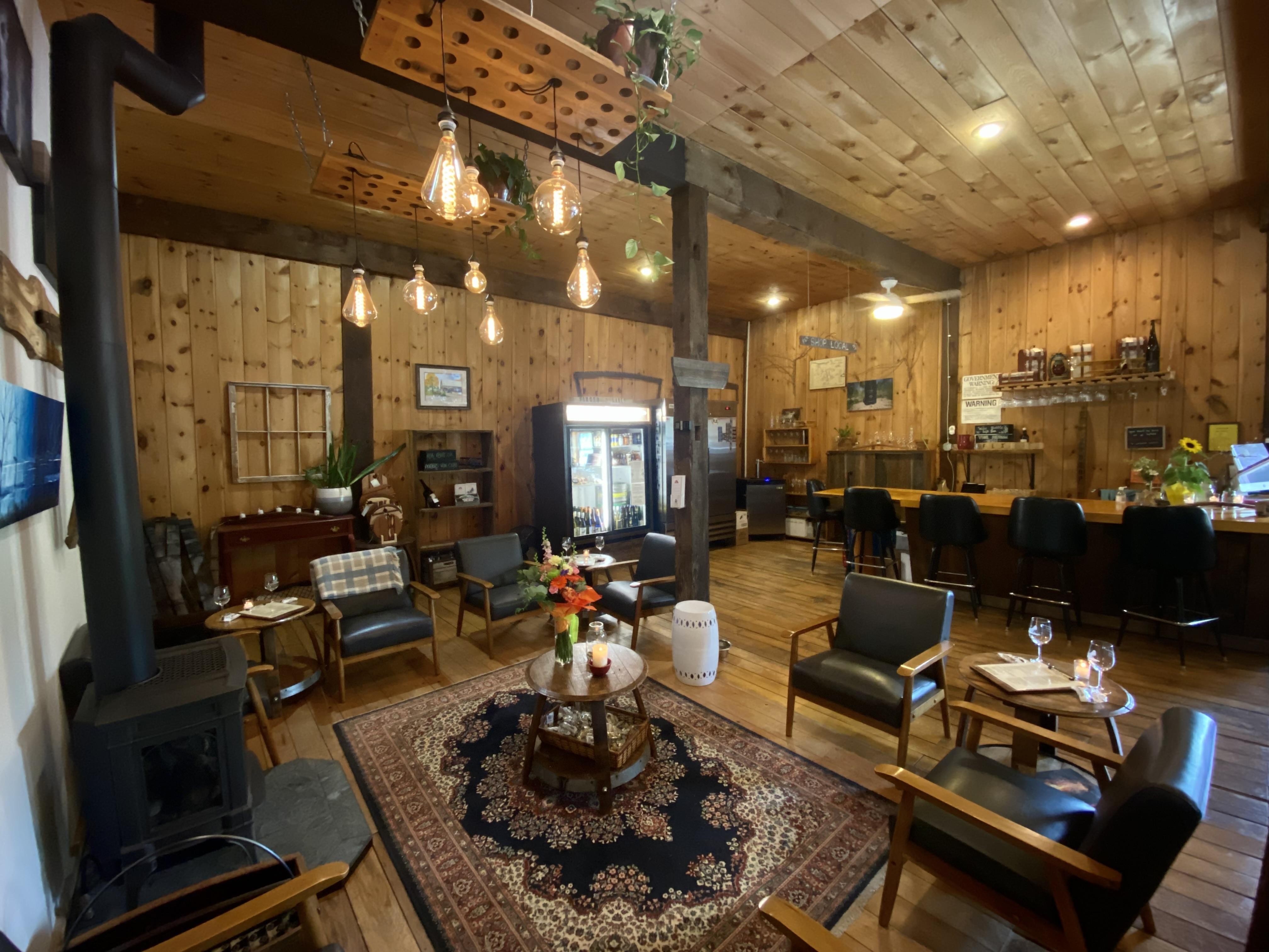 The inside features of our main tasting room include a rustic ambiance perfect for any smaller gathering. Whether we're the first celebration before the big day, or the hosting space of your cocktail hour before heading out to your own customizable tent by our gorgeous vineyards, we can work with you to make your memories with us unique to your story.