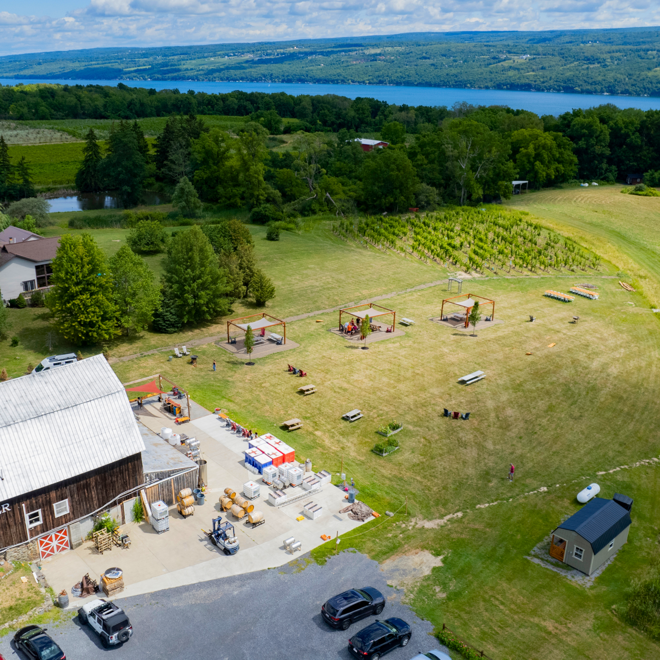 With a passion for great wine, ethical farming, and hospitality, Barnstormer Winery was established in 2013 to embody these ideals. Located in a historic barn with roots stemming back to the early 1800′s, we have made significant renovations to preserve the integrity and atmosphere of this Seneca Lake gem while modernizing its aesthetic. We have a three acre “home farm” on the winery estate, along with rolling vineyards and rustic charm serving as the perfect backdrop to your elegant, low-key, casual. Our cozy barn provides a warm atmosphere to welcome guests to your special day, while our vast outdoor space houses a variety of possibilities for your ceremony and/or reception. Our vineyards provide a sense of tranquility and elegance, creating an ambiance that is distinctively romantic and celebratory. The combination of our romantic barn, lush grapevines, manicured gardens, and rural charm sets the stage for an unforgettable wedding experience. Casual, elegant, and stress-free.