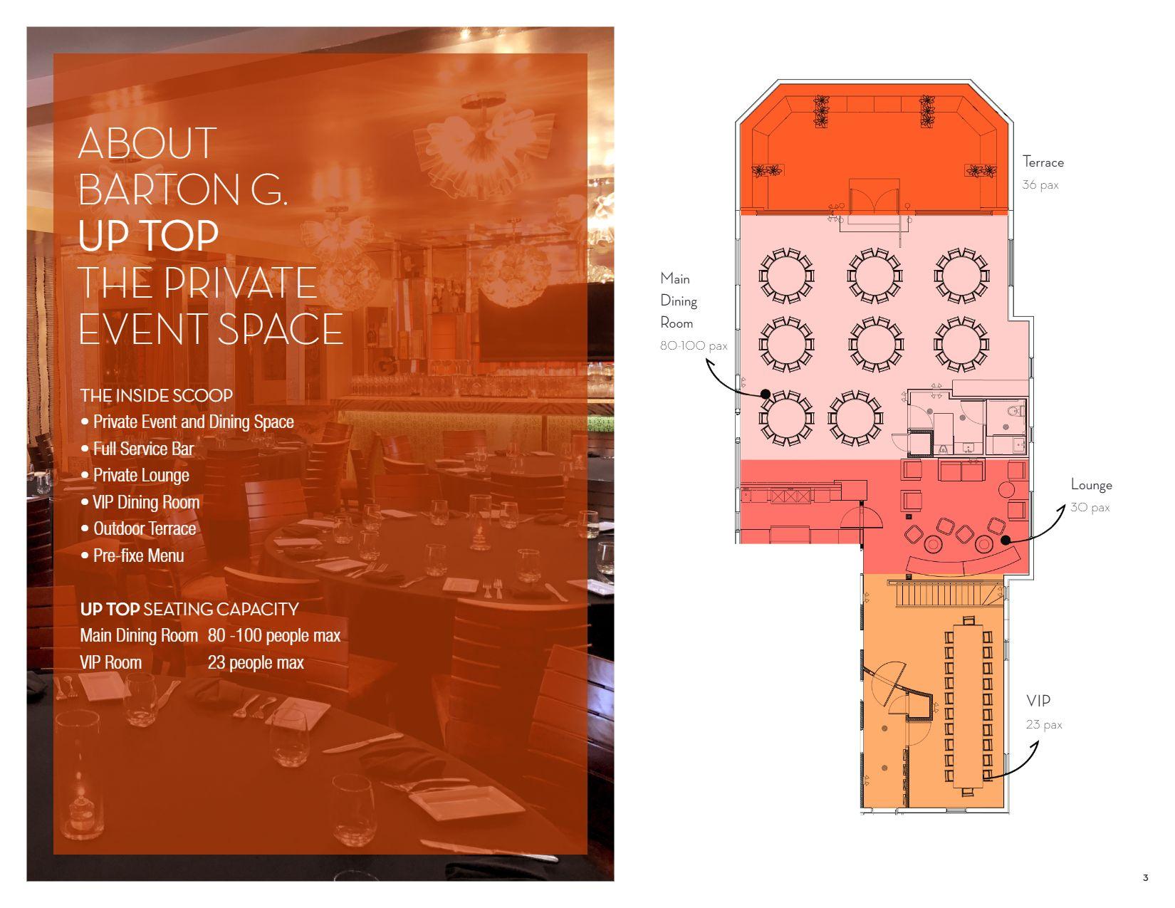 THE INSIDE SCOOP: • Private Event and Dining Space • Full-Service Bar • Private Lounge • VIP Dining Room • Outdoor Terrace • Pre-fixe Menu