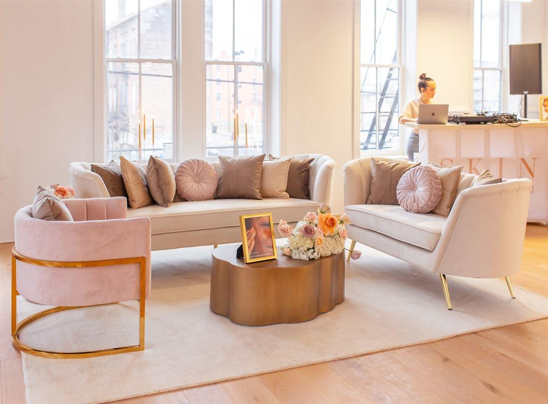 -2,970 Square Feet, with 12"+ Ceilings -Fully ADA Accessible, with Elevator -Chairs, Round Tables, 8' Buffet Tables (2), Hi-Top Cocktail Tables -Custom-Built Portable Bar -Opulently Appointed, Private Hosts' Suite -Warming kitchen, where caterers can serve the perfect meal -Customized Floor Plan, Based on Guest Count -Set-Up of Tables and Chairs -RACE & LIBERTY Metered Parking Lot Adjacent -AV Equipment (Projector/Screen/Bluetooth Speaker) Available -Strong WiFi