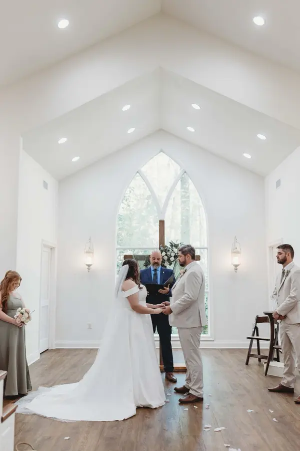 An incredible, rustic white chapel that was created with YOU in mind. Don't let the fear of rain or crazy weather stress you on your special day.
