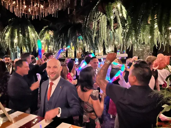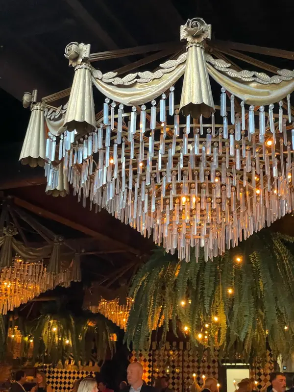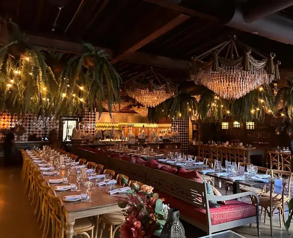 This space features 3 separate bars, hundreds of lush tropical plants, custom and antique furnishings, a retractable roof in our lush courtyard, and 15 massive crystal chandeliers salvaged from the ballroom of the Historic, Yamasaki-designed century Plaza Hotel in Los Angeles.