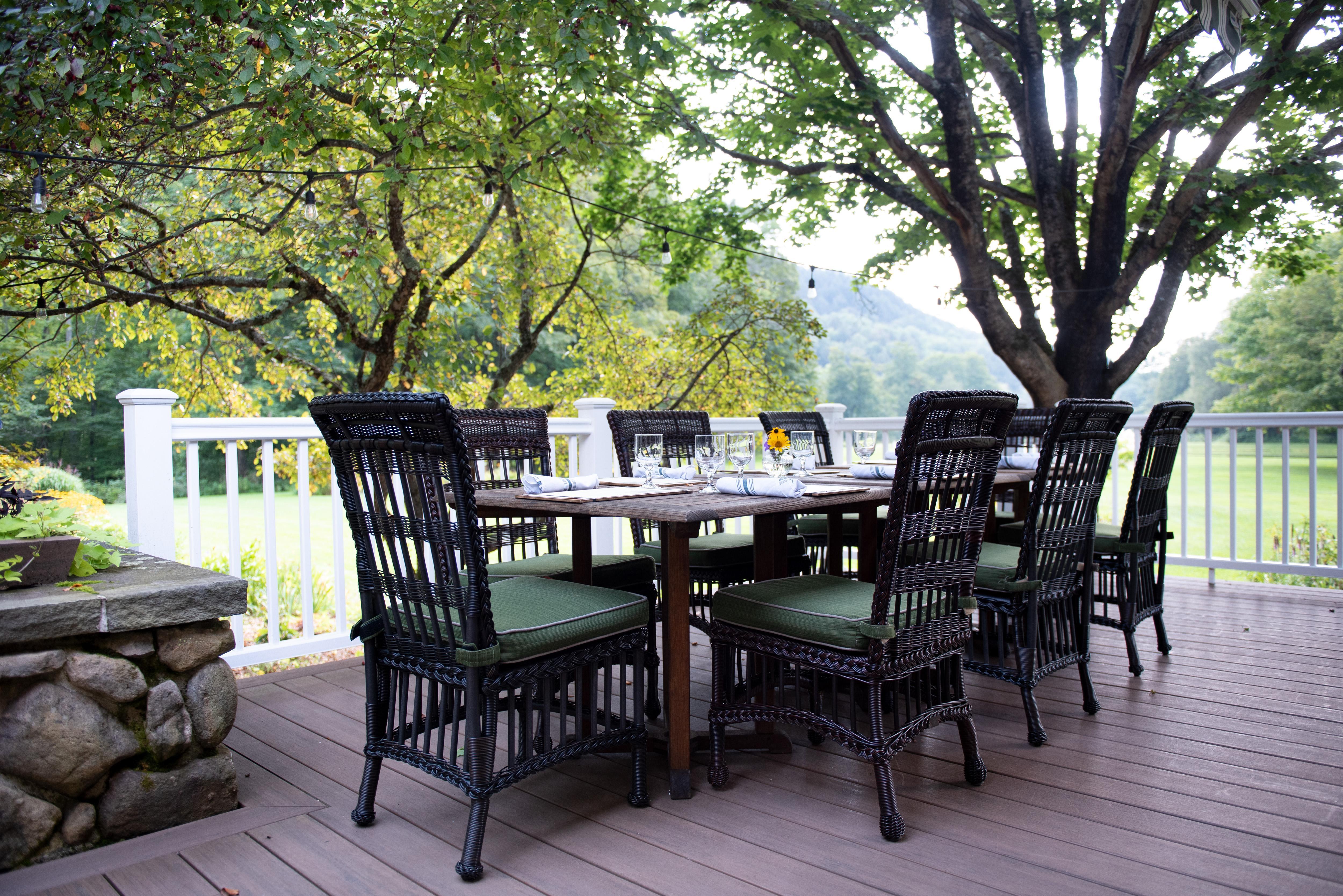 Gather your group for an intimate lunch or dinner and enjoy the pleasures of the country on our welcoming wraparound porch. Perfect for a cocktail hour or a family rehearsal dinner, our porch can accommodate up to 20 guests for a meal.
