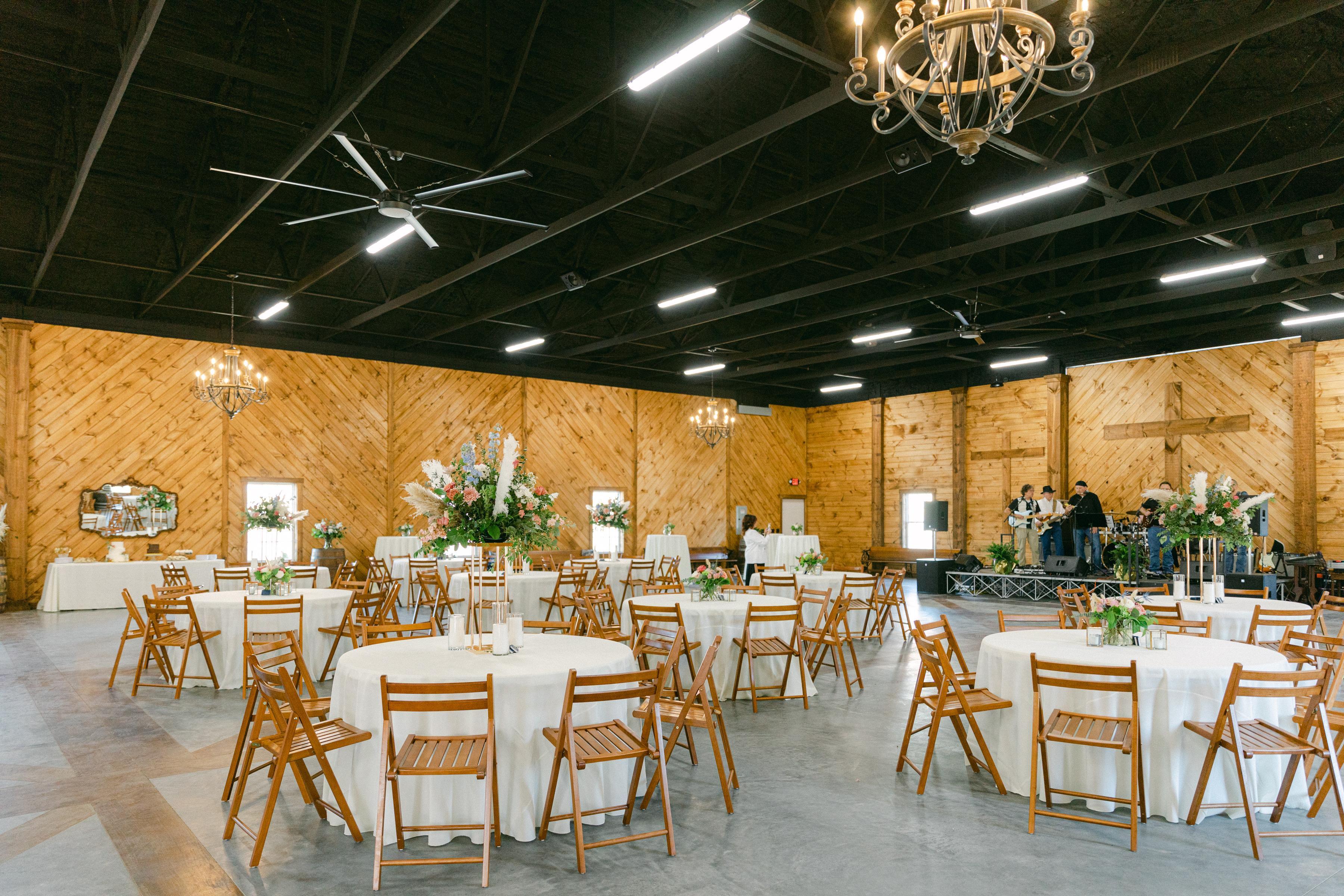 Expansive Grounds: The ranch spans several acres, offering a variety of landscapes including rolling hills, wooded areas, and open pastures, perfect for outdoor ceremonies and picturesque photography. Elegant Barn: The centerpiece of Bell Bottom Ranch is its beautifully restored barn, which features high ceilings, exposed wooden beams, and sophisticated lighting. This space can accommodate both large celebrations and intimate gatherings.