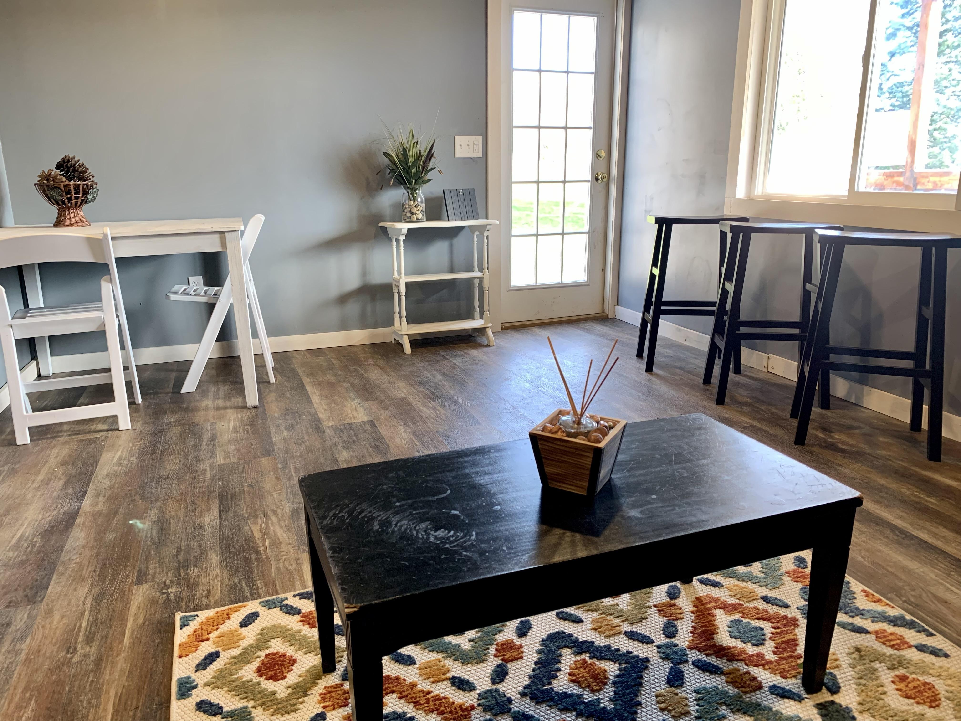This historic building has soft touches of class, and we have intentionally opened the back wall for air flow, sunlight, and stunning views.