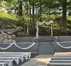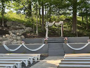 Bell Tower Falls celebrates nature's beauty with a canopy of trees for the ceremony, two cascading waterfalls on the property, a white chapel pavilion dining area, and the glow of edison lightbulbs over an open patio. Create your timeless, romantic memeories with the echo of the water as you ring one of the bells as you're pronounced joined.