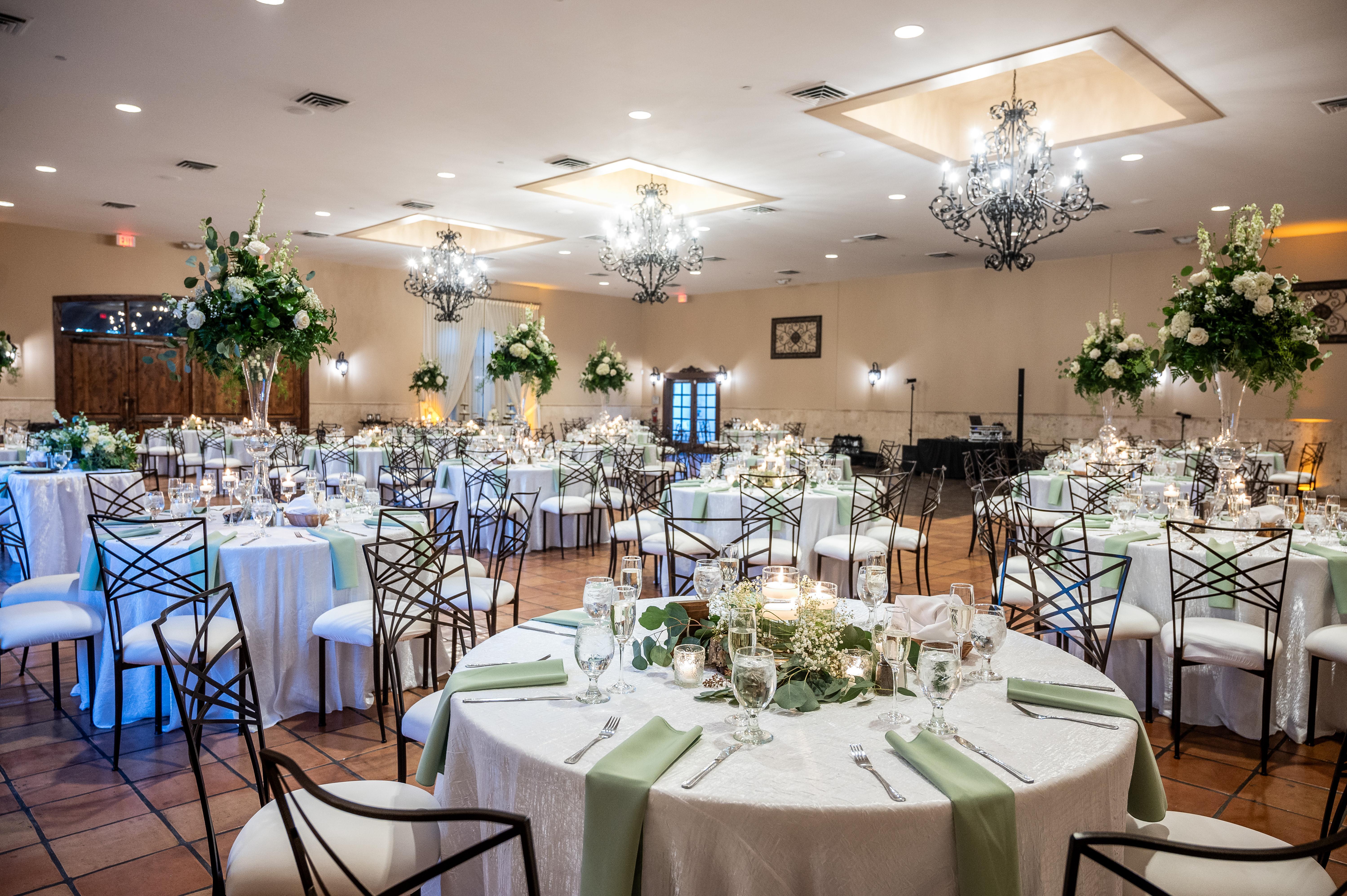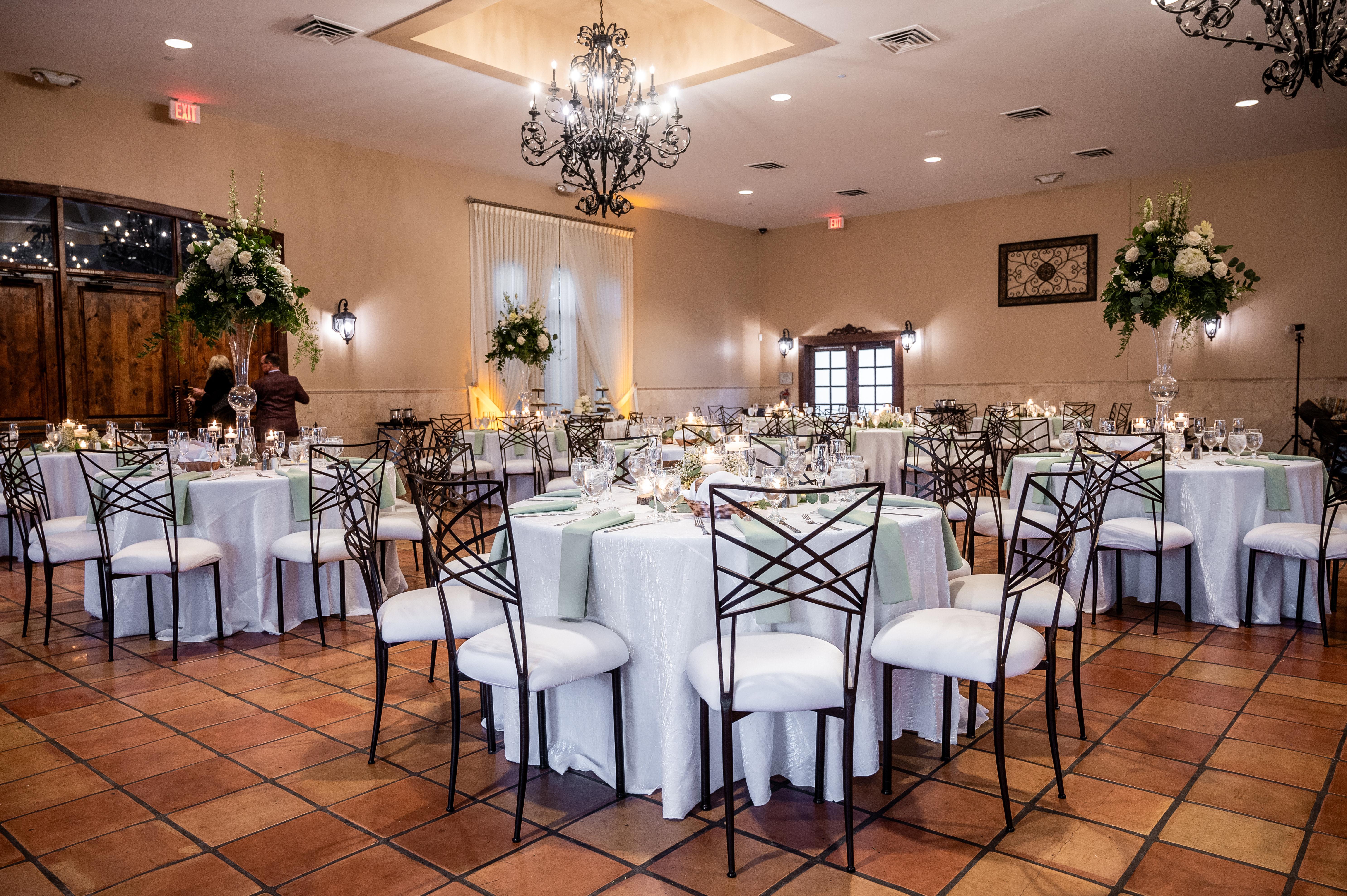 -5,000 square foot indoor ballroom -Ballroom seating for 300 guests -Beautifully lighted brick stairs leading to the ballroom -Saltillo tiled floors 475 sq ft. wood dance floor -Beautiful wall sconces create elegant lighting and ambiance -Three gorgeous chandeliers -Spacious catering prep kitchen -Guest bathrooms -Can accommodate indoor ceremonies, receptions, corporate events, prom, baby showers, rehearsal dinners, birthday parties and more...