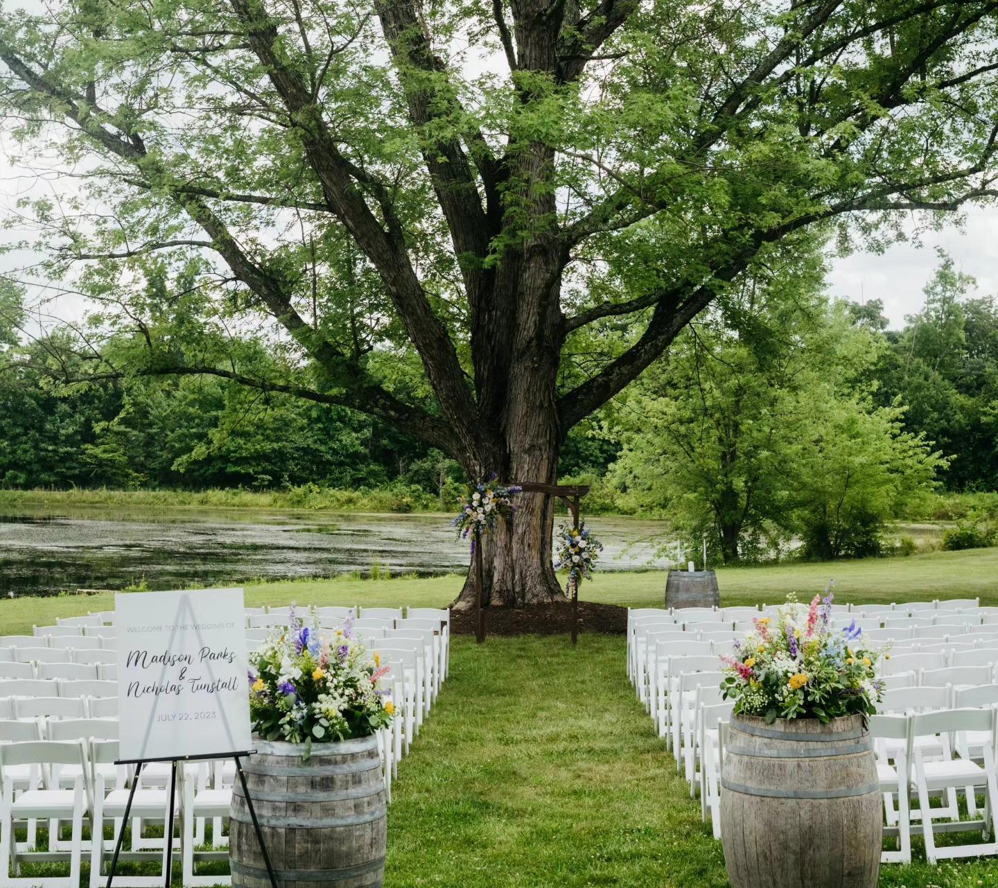 We wanted a venue with an outdoor option for a ceremony that was not a barn. This venue is absolutely beautiful and was exactly what we were looking for. We had our ceremony outside by the lake, our guest used the outdoor patio space for cocktail hour then we had dinner and dancing mostly inside. It was the best of both worlds with air-conditioning while we ate yet being able to use the outside since the weather was so nice. Jacque and her team were very easy to work with and basically allowed us to do whatever we wanted with the space. Food, alcohol and decoration set up were included in the per person pricing which was amazing for us since we live out of state. Everyone raved of the food and drinks, the beautiful ceremony and the overall great atmosphere. There is also a house for rent on the property which made getting ready a breeze since the bridal party and S.Os were all able to stay there. Jacque and her team truly made the weekend so stress free for me and my husband, I couldn't imagine getting married anywhere else!