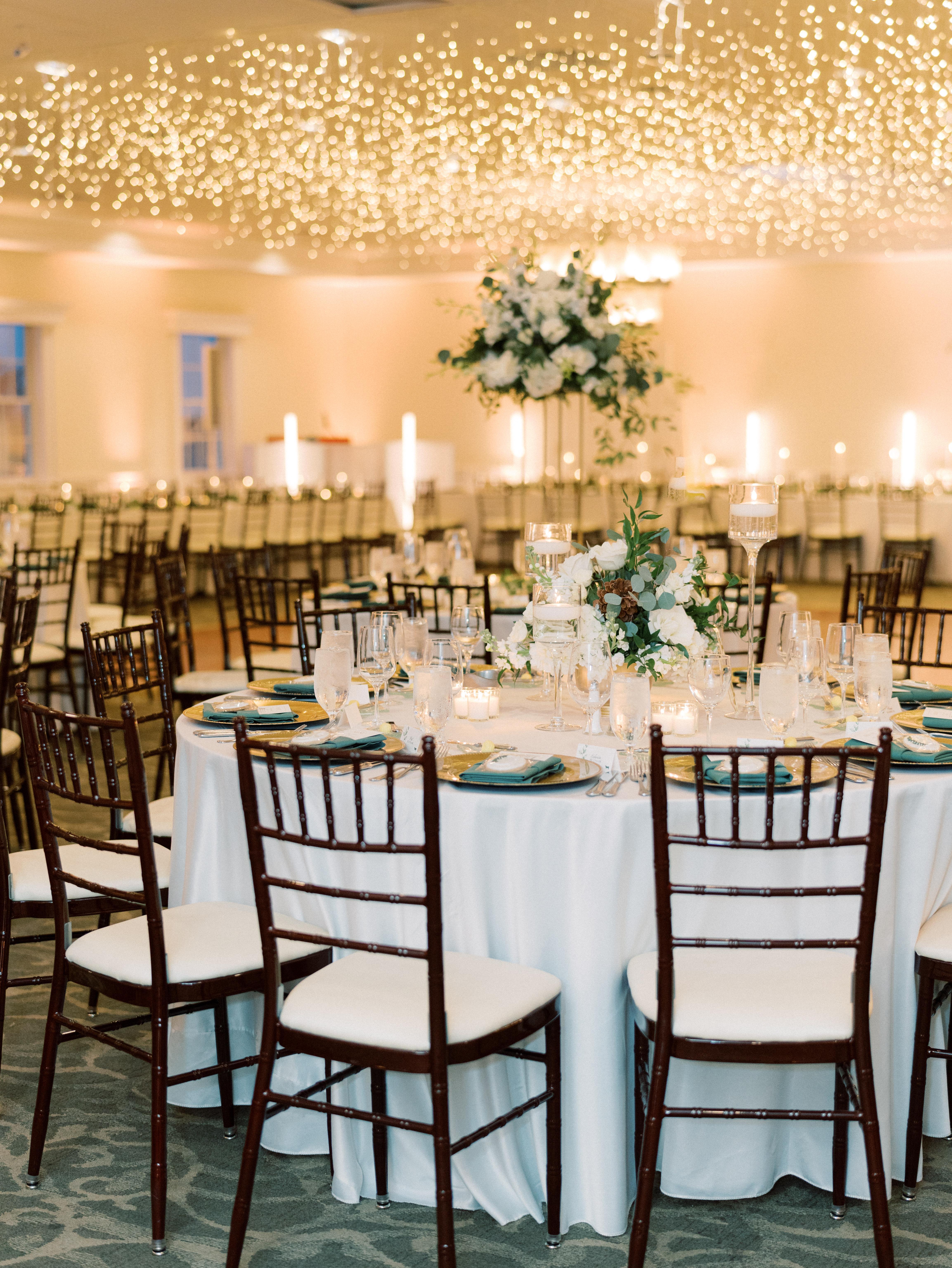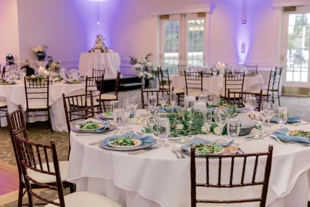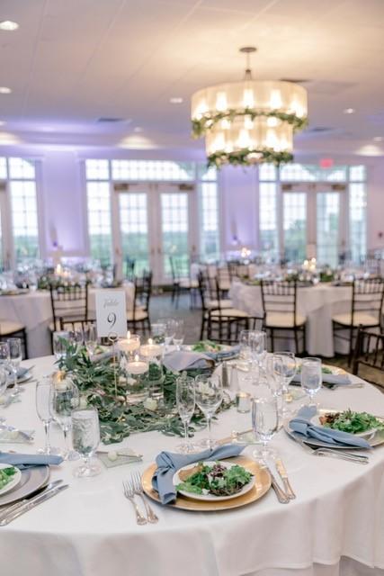 Cocktail Hour: 3 Passed Hors d’oeuvres Plated Dinner Reception: 1 Salad, 2 Entrées & 1 Vegetarian Entrée Beverages: Coffee / Hot Tea / Water Bar Service: 4 Hour Beer + Wine Open Bar Wedding Coordination, 5 Hour Reception, Floor Length Linens, Chiavari Chairs, Votive Candles, Charger Plates, Mirrored Tiles, 24x24 Dance Floor, 12x24 Staging, White Draping, Slideshow Audio Visual, Cake Cutting & Service, Menu Tasting for 4 Guests, A Two-Some of Golf
