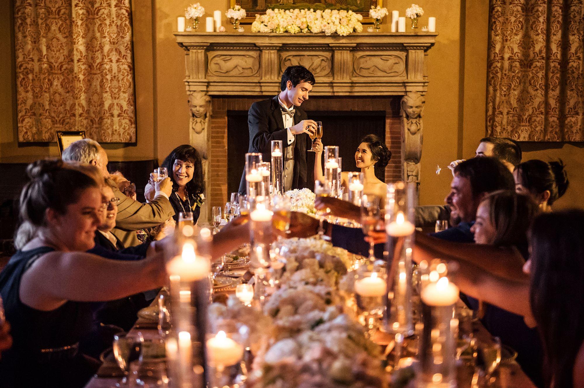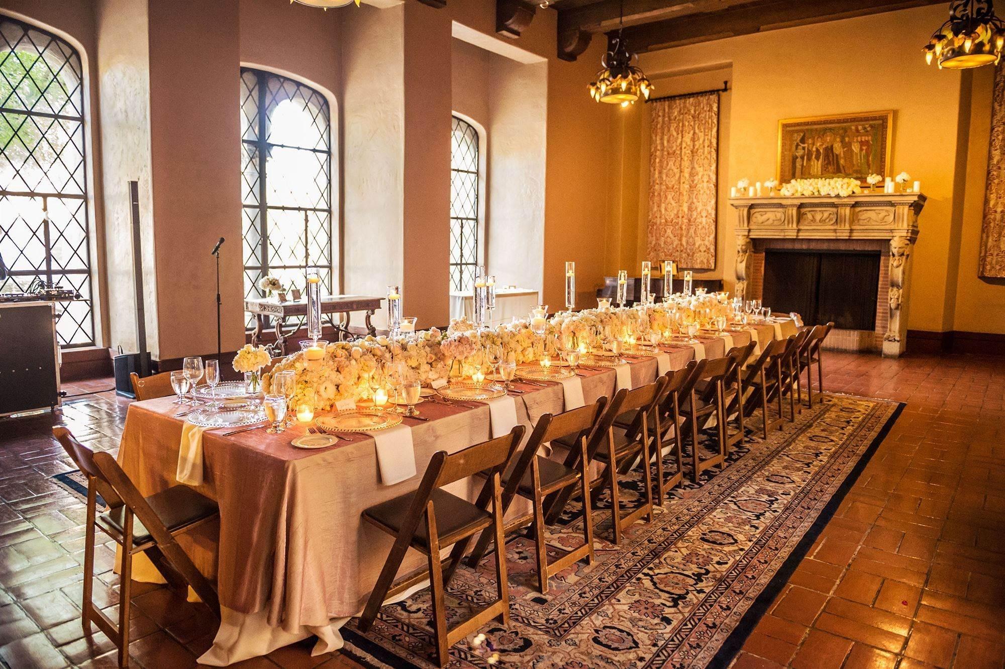 Our main event spaces, the Ballroom and Terrace, whose history and beauty are perfect for hosting a fabulous wedding are located on on Second Floor. Our Member's Lounge is also located on this floor. We offer flexible socially distant room arrangements that can accommodate the any wedding, along with various seating plans. With its picturesque view of the historic leaded glass arched windows and the East Courtyard below, the outdoor covered Terrace is the perfect little space on a clear day. With a fireplace, bookshelves, period furniture, and grand piano, our luxurious Members Lounge has all the Old World charm you could ever dream of for your perfect event. The Venetian Ballroom comprises our Ballroom and Venetian Room, separated by an accordion wall. With a stage, grand piano, and dance floor, this is a perfect venue for any grand event.