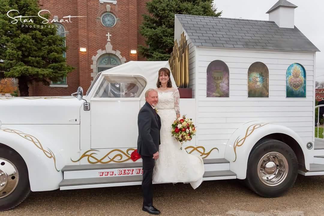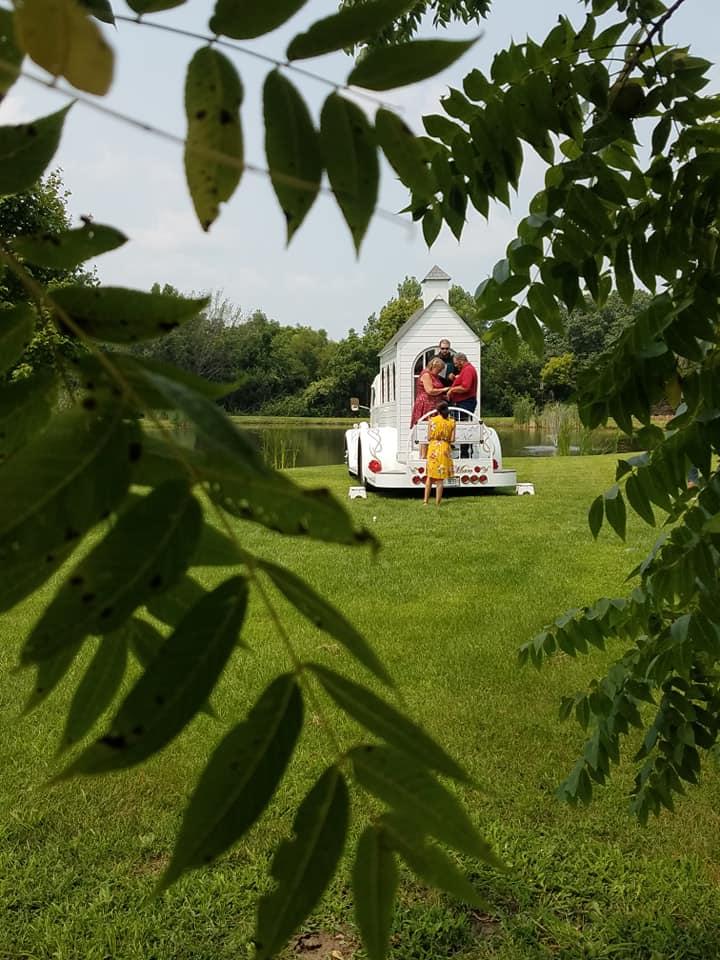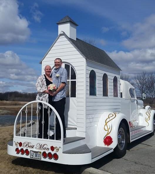 Honorably named “Best Man” the mobile chapel is recognized as the world’s fastest wedding chapel by Guinness World Records. Our 1942 American La France mobile chapel is the result of a $100,000 conversion on the famed TV show Trick My Truck. It features stained glass windows, an altar, two wooden pews, and even an organ. It’s been covered by the biggest news and media outlets across the globe including World News with Charles Gibson. It’s also been featured in the LA Times, National Enquirer, and made a special trip to New York City for a photoshoot with international fashion designer Betsey Johnson! We can marry you on the road or parked at your chosen location with an unlimited guest list and then deliver you right to the reception! The ideas are limitless! The Best Man may only be scheduled for use in the Midwest from the first day of Spring to Halloween.