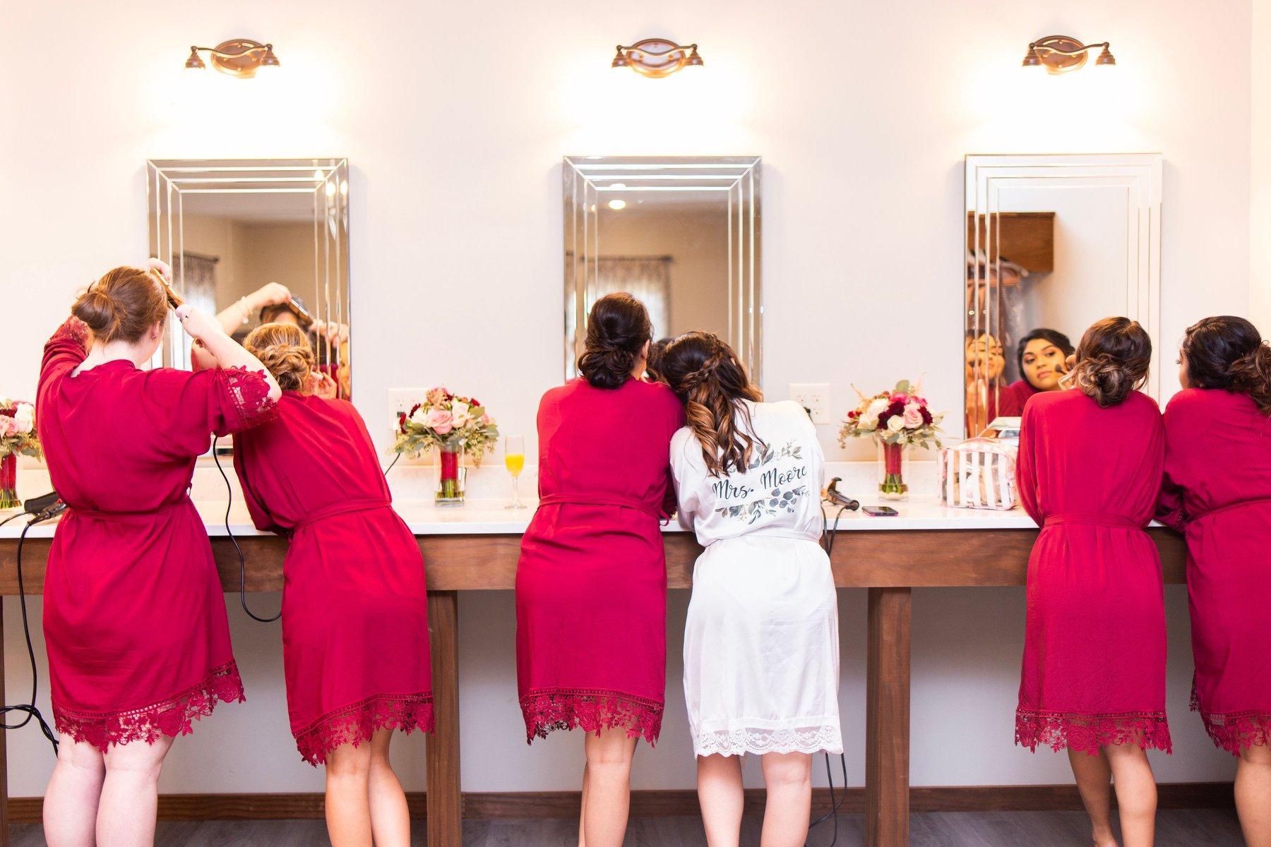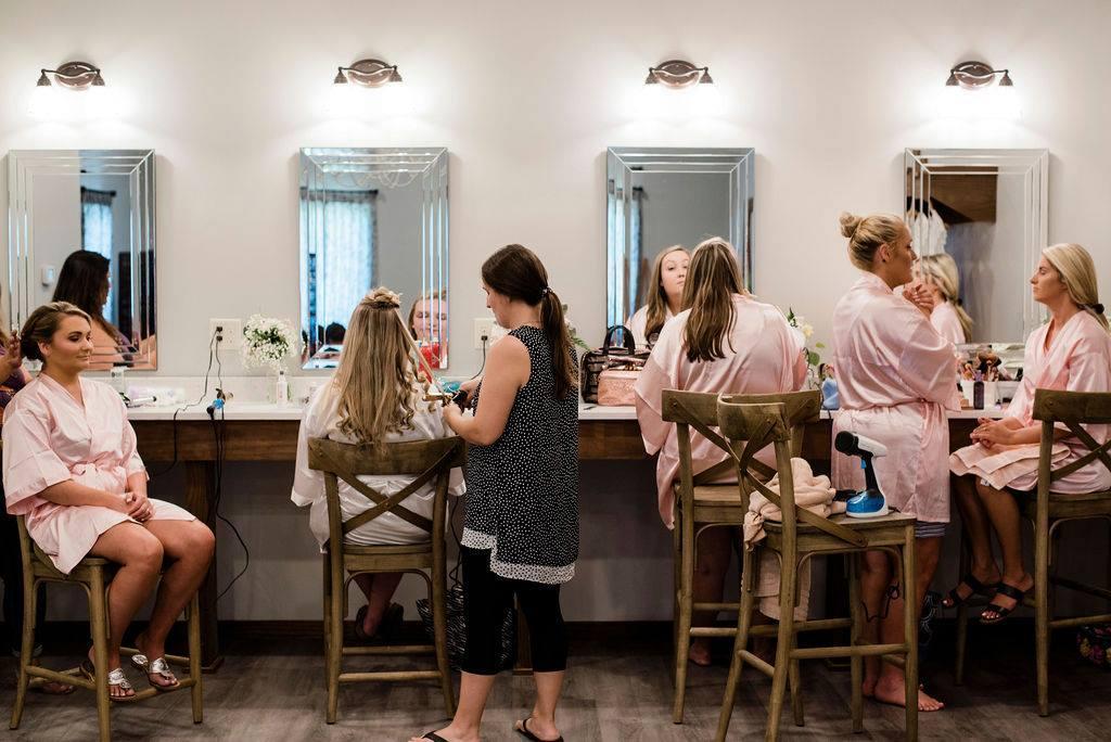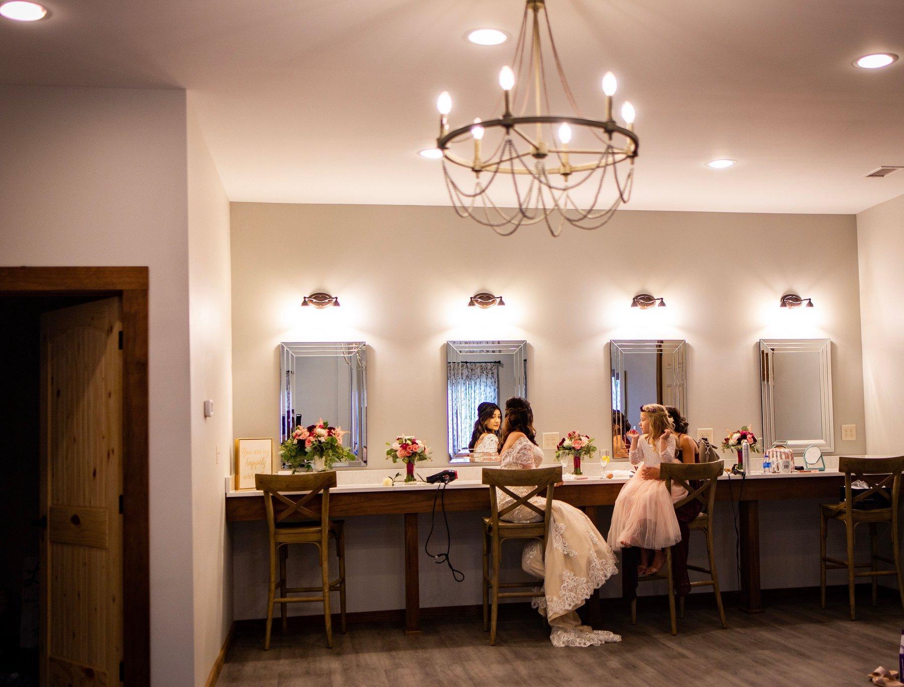 The Bridal suite is large (1000 sf) with a private bathroom, make-up & hair stations, designer furniture, mini-refrigerator, and your own thermostat - so you control the temperature in that room! Plenty of space to hang-out, have fun, and prepare for your big day.
