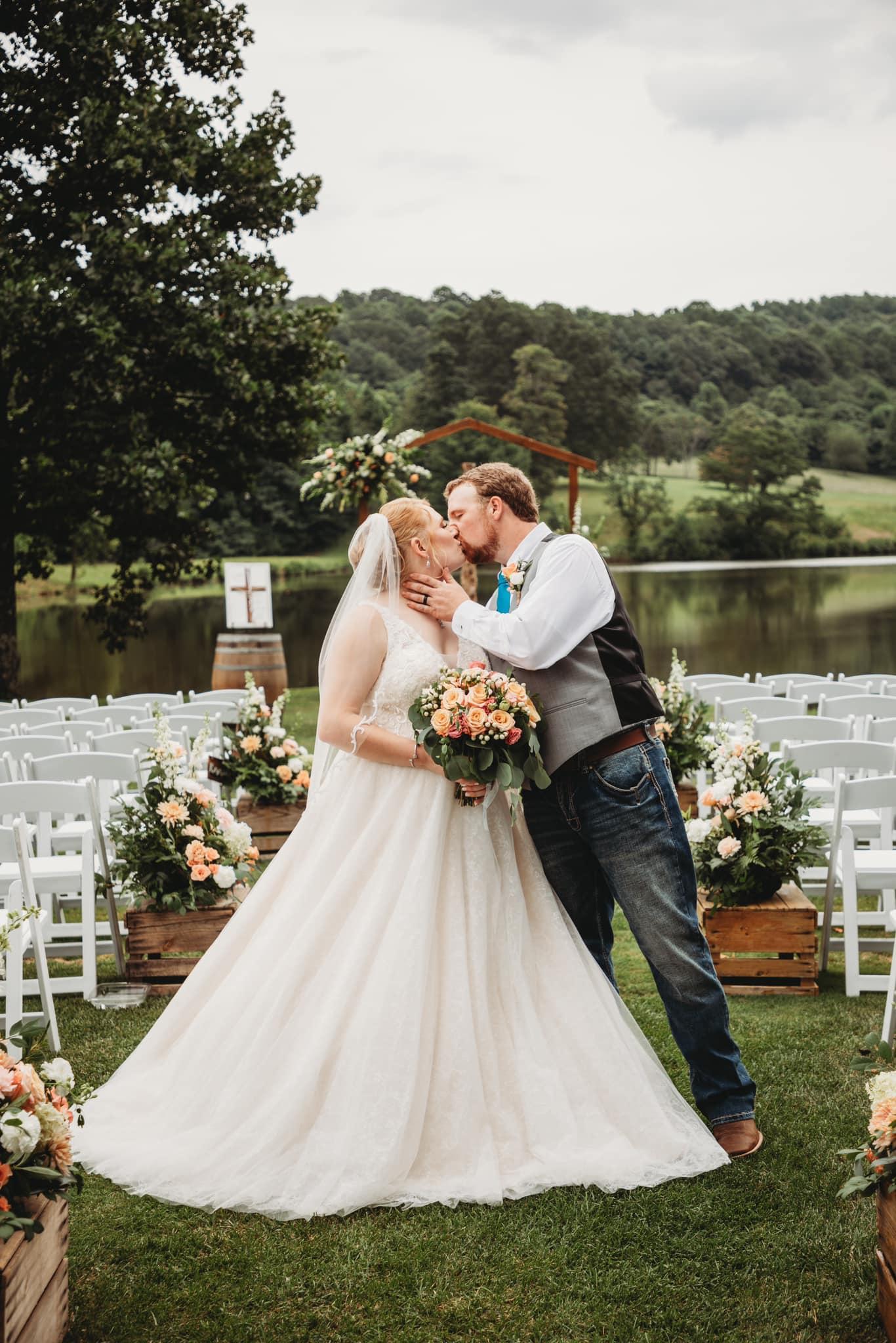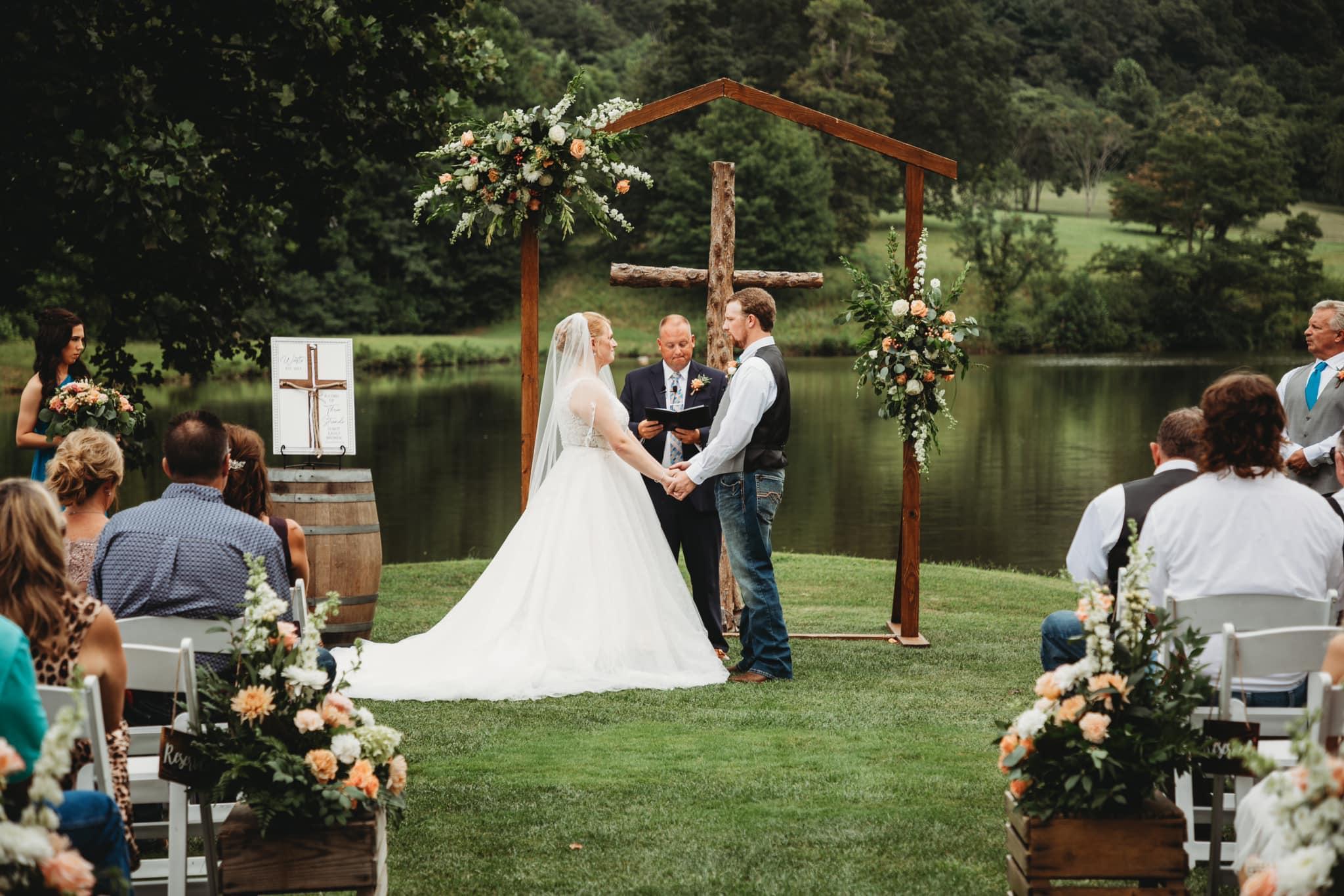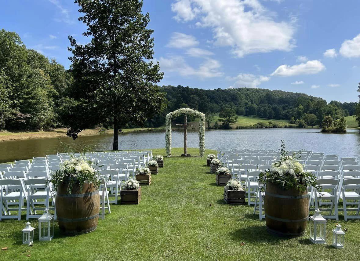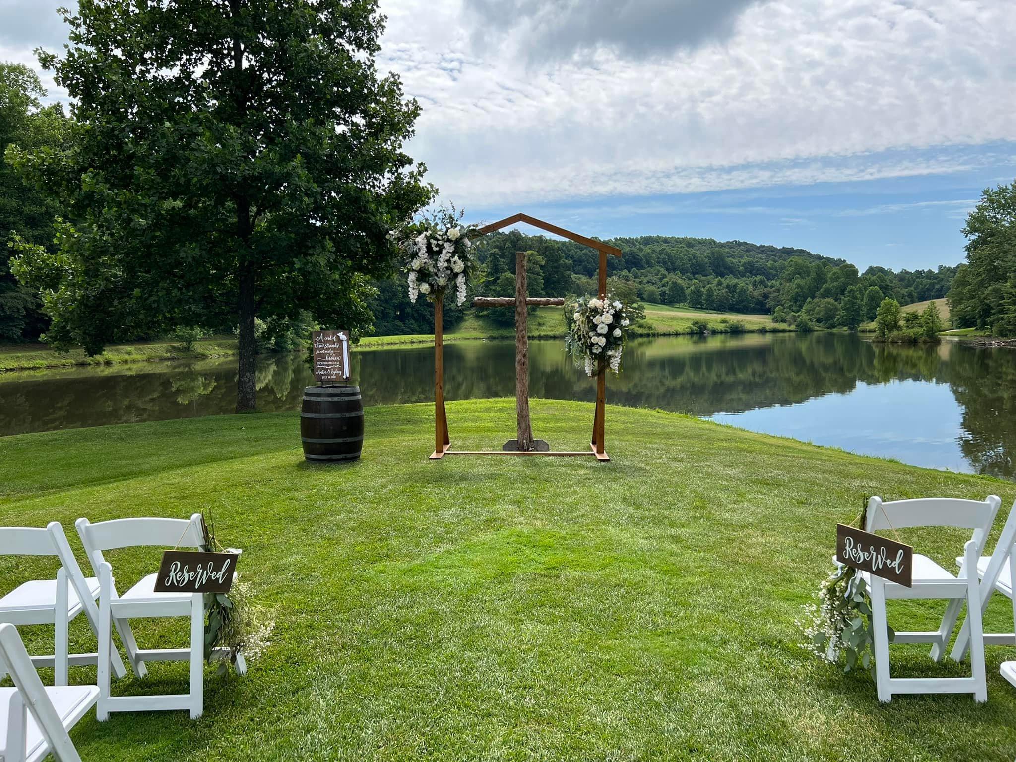 This ceremony space is a golf green peninsula that juts out into a 6 acre privately owned lake. It is a stunning place to get married. One important detail, even though this is primarily an outdoor venue, the green is fully shaded during the ceremony - 5:00 to 6:30pm for most of the year (April - Sept 15th). This makes your guests and wedding party much more comfortable and it makes your pictures better. We are on top of Brushy Mountain so we are typically 10 degrees cooler than Wilkesboro.