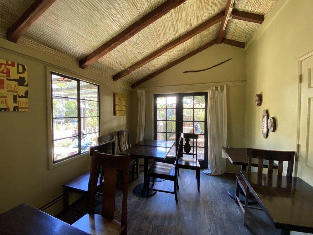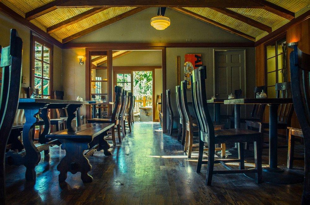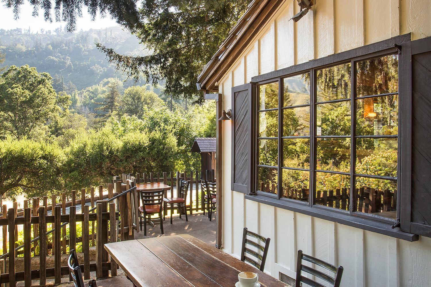 French doors open up from Big Sur Bakery's dining room to a lush, charming private outdoor gathering space. Our garden patio is nestled between the bakeshop and the legendary cacti gardens established by Alice Jaeger in the 1930s. Perched over highway 1, you and your guests will dine under the redwoods and soak up views of the Santa Lucia Mountain Range.
