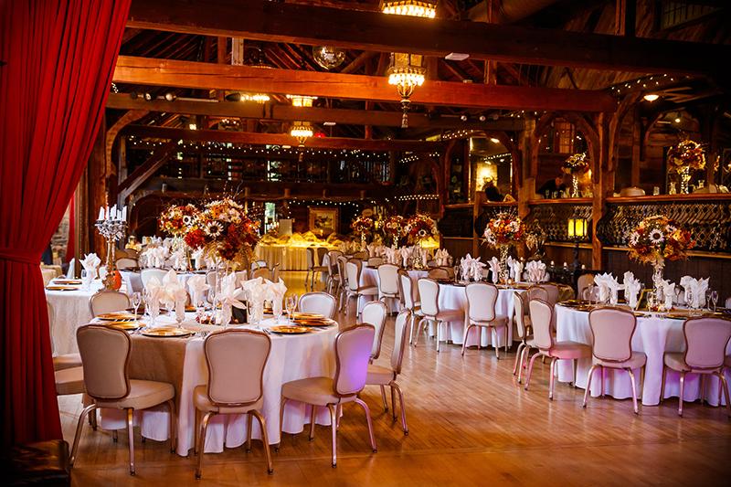 A spacious transformable two level hall, for your guests to enjoy the ceremony, reception and their meals. The room connects to a dance floor which is lit up by a beautiful massive antique fireplace.