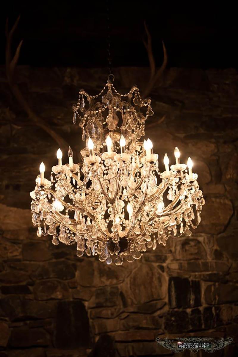 Beautiful chandeliers adorn the room and highlight your celebration.