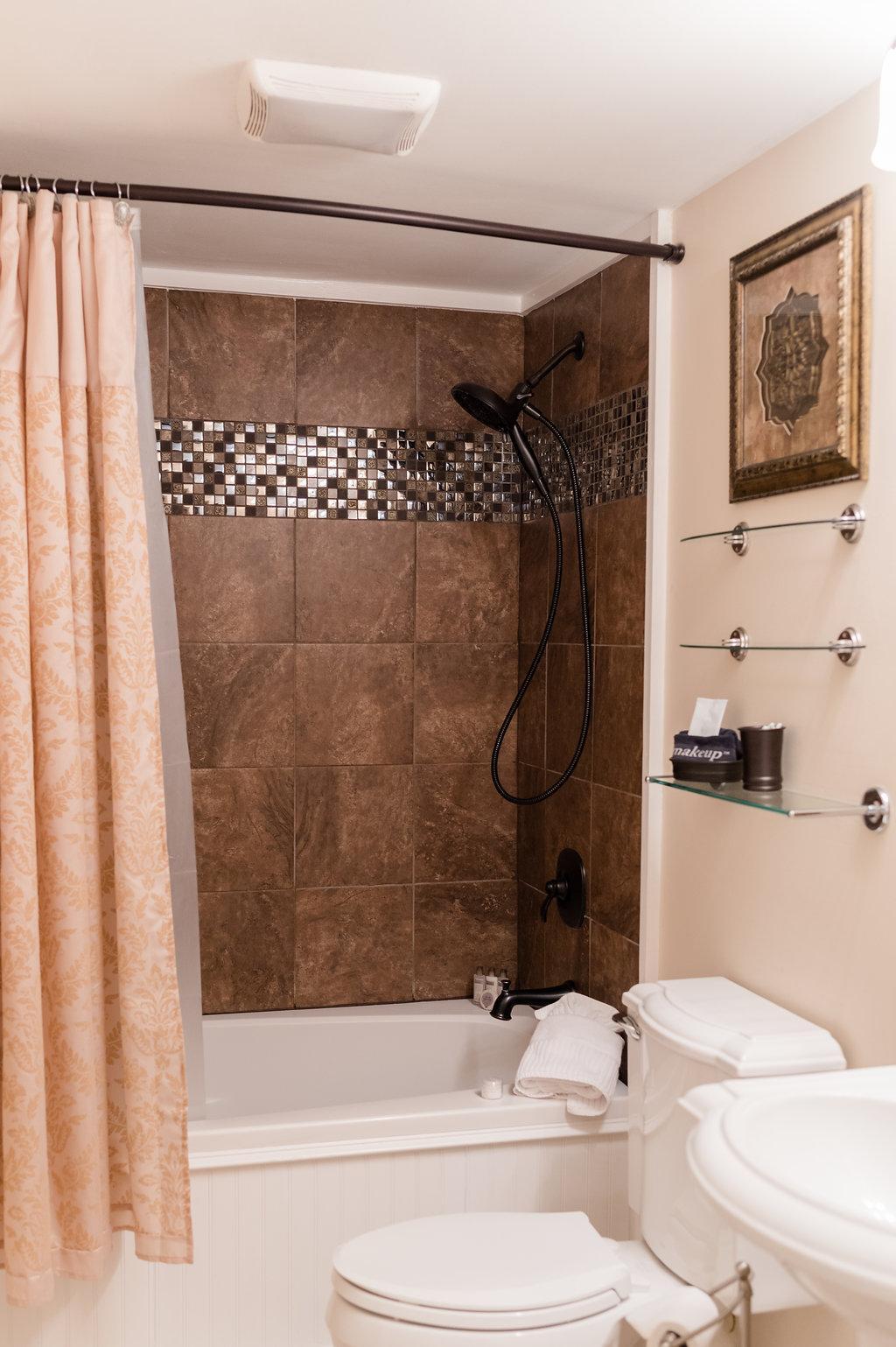 Queen-size bed with custom headboard - Gas Victorian fireplace - Jacuzzi tub and separate shower - TV & DVD player - Partial mountain view - Mini fridge - Spa robes - Designer bath products - Self-controlled central heating and air - Complimentary WiFi - Hair dryer and make-up mirror - Iron and ironing board - Ceiling fan