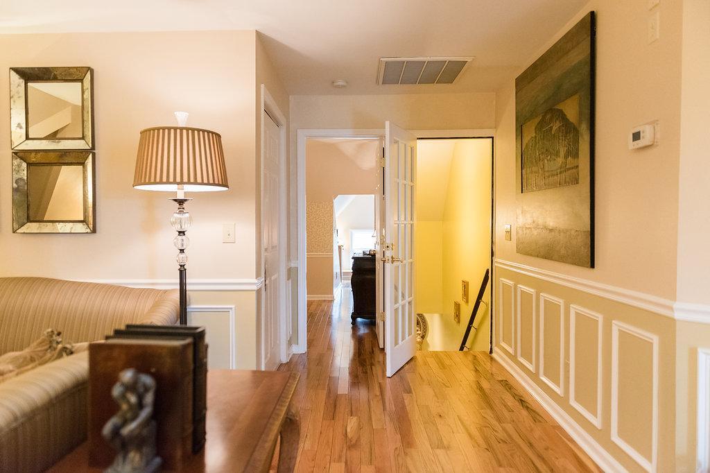 Two bedrooms - King-size bed - Second room with full-size bed - Single whirlpool tub & shower combo - Two flat screen TVs with DVD players - Private rocking-chair porch - Spa robes - Designer bath products - Complimentary WiFi - Self-controlled heating and air - Make-up mirror and hair dryer - Iron and ironing board - Vanity