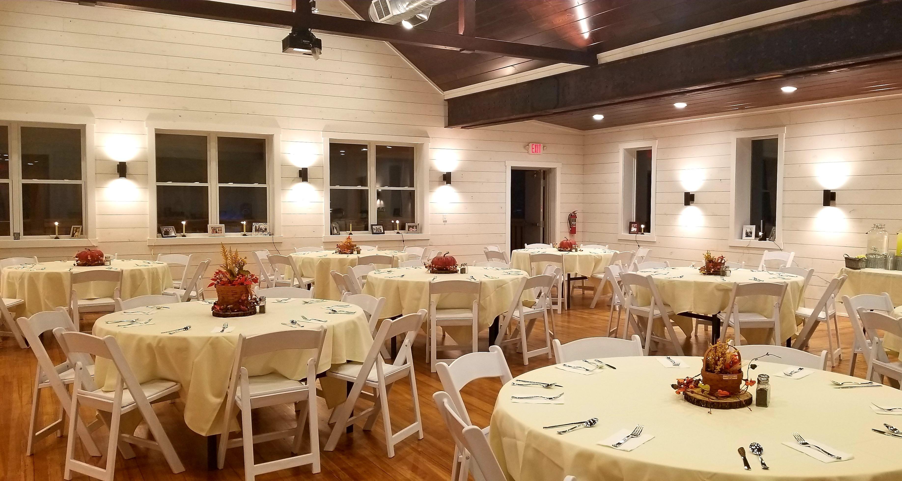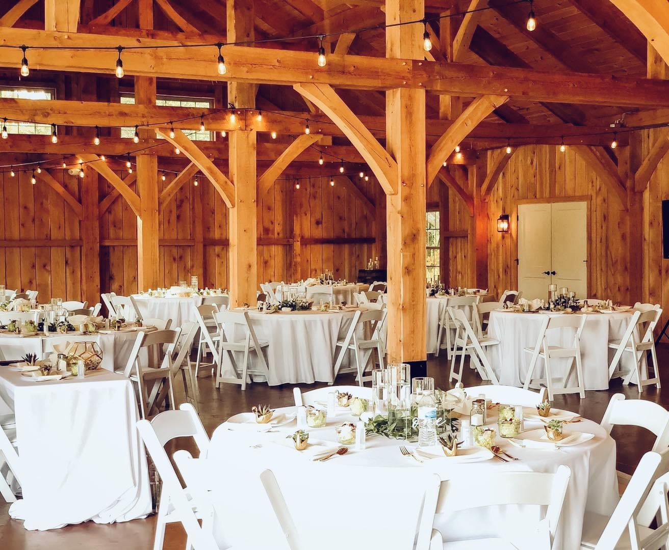This space boasts beautiful Amish craftsmanship. It has garage doors available to open to create the indoor/outdoor wedding you have imagined.