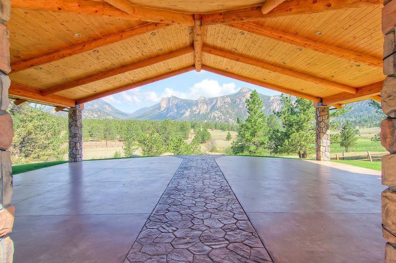 The Homestead & Wedding Pavilion venue can accommodate up to 100 guests and aesthetically is a rustic cabin reception space, with beautiful green lawn for cocktail hour and stunning Pavilion with Rocky Mountain views.