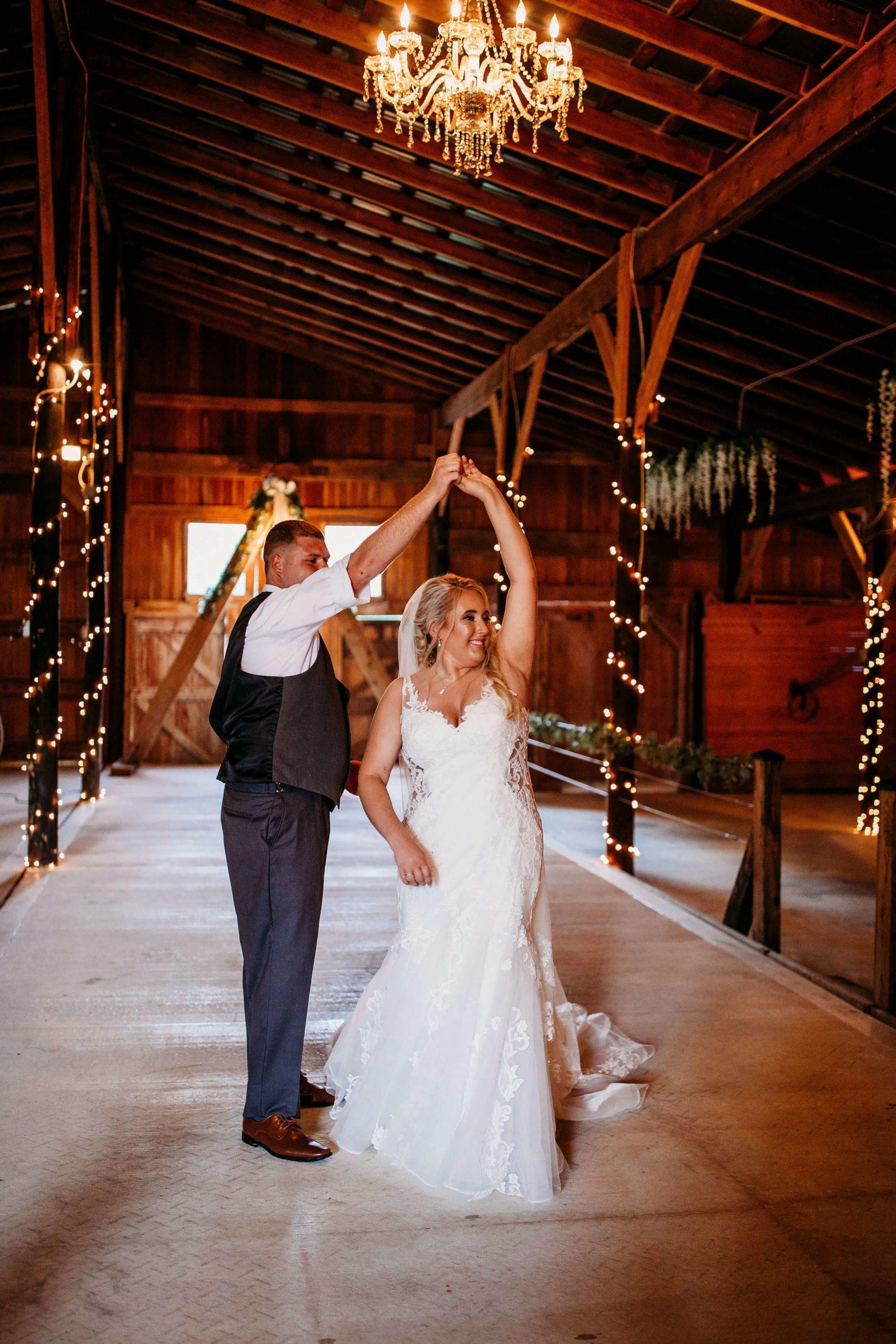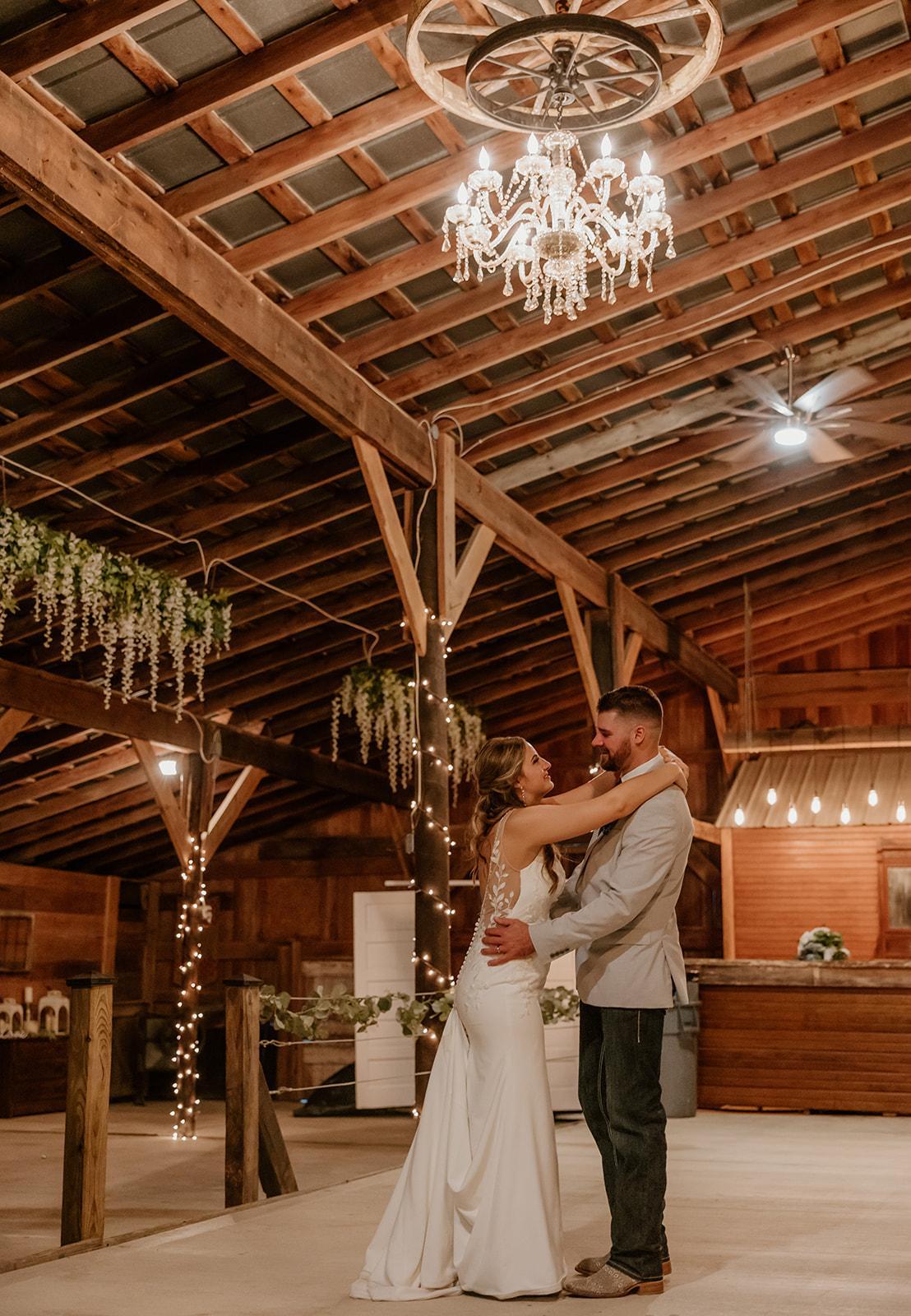 The Red Barn will accommodate 250 max guests with 4400 sq ft, you will have access Friday to decorate until noon on Sunday. This location boasts a unique wagon wheel chandelier, rustic/ vintage aesthetic, and attractive horse stalls that make the perfect backdrop for that barn feel. Greenery decor is found throughout the barn giving it a rustic elegance.