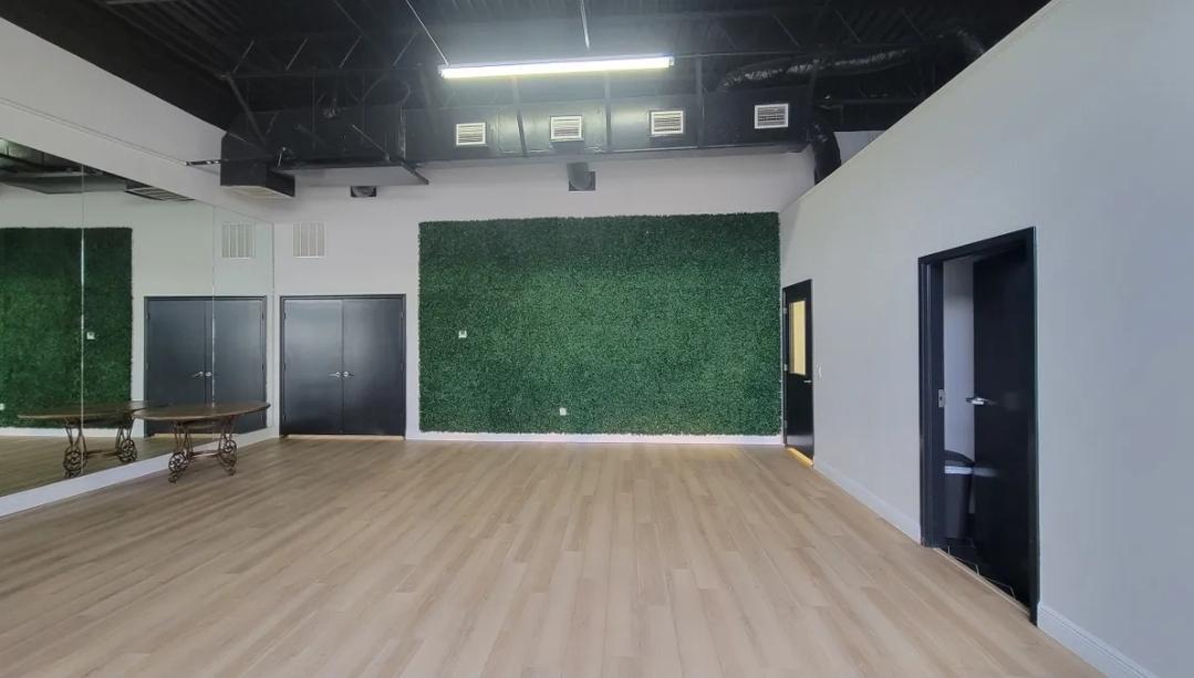 Grass wall, bathrooms, double door entrance, ADA Accessible.