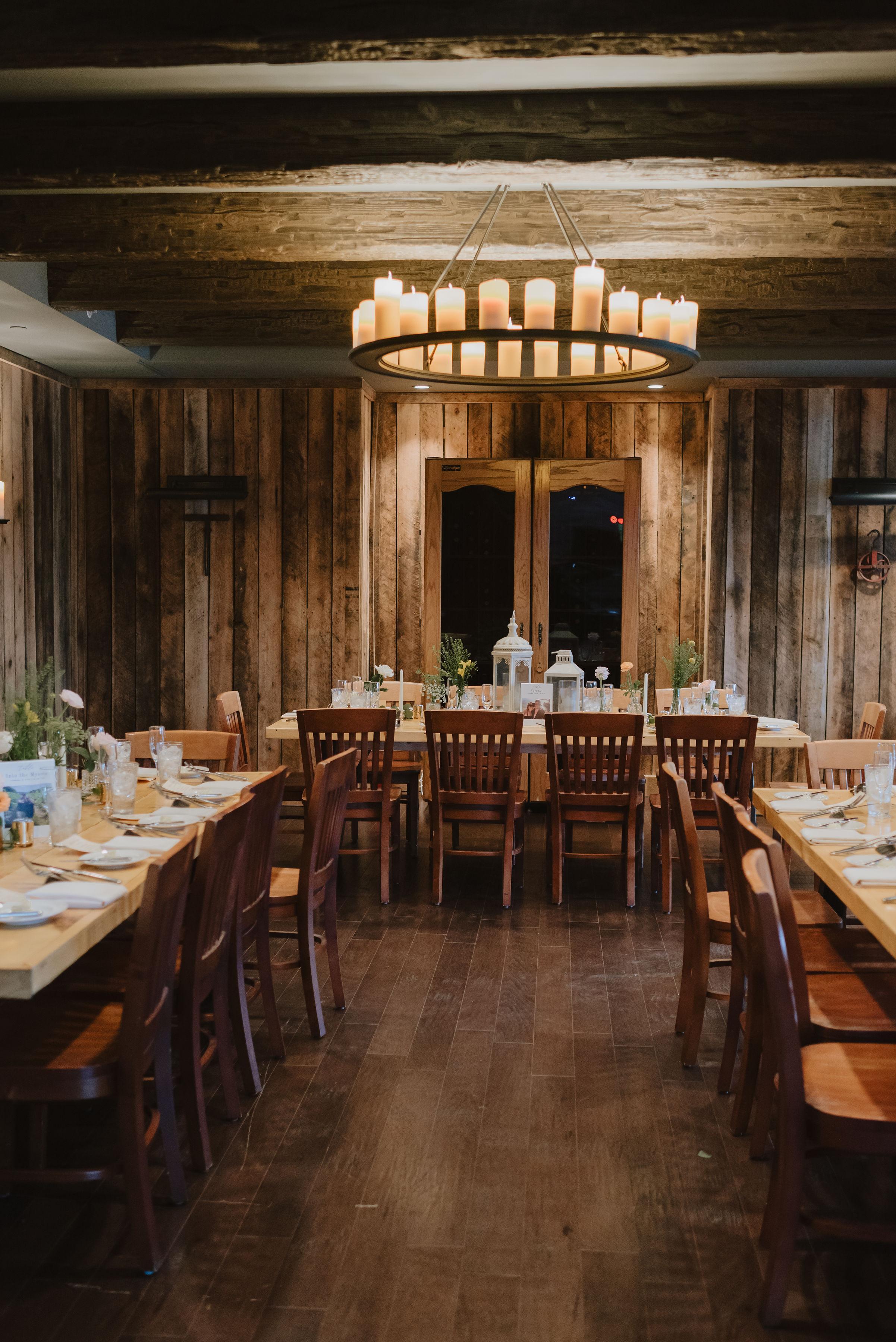 BLACKBARN Hudson Valley features a multi-level formal dining room with fireplace and loft that overlooks the main dining room. Guests are also able to enjoy the private terrace with optional covered awning and use of country chic Tavern bar. Each wedding is customized utilizing the existing wooden top tables and restaurant furniture.