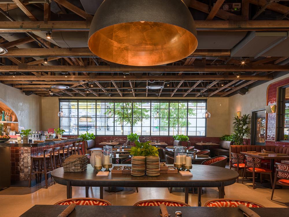 Perfect for large events, this full buyout spans indoors and out with room for up to 400 seated guests. The dramatic indoor space flows seamlessly to a covered patio, offering a dynamic setting for ceremonies, seated dinners, and lively receptions. A central cook line and spacious bar create natural gathering points. At the same time, the open layout allows for dancing, lounge areas, and a wedding ambiance that feels both elevated and effortlessly festive.