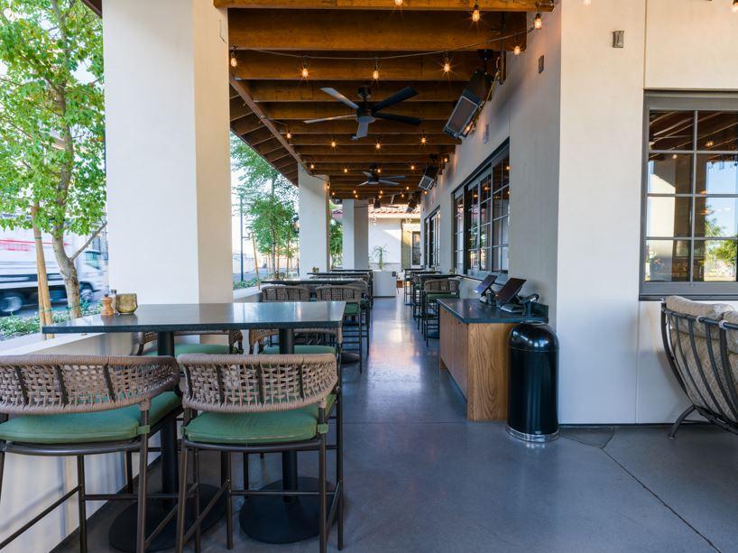 - Misters - Fans - Private entrance with gate - Mix of seating (couches, cocktail rounds, etc.)