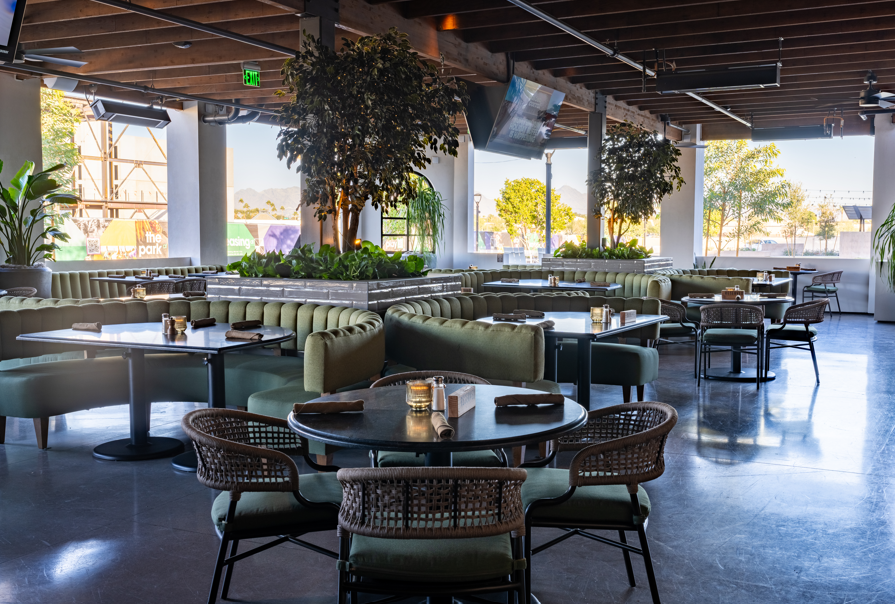 The Blanco Patio at Blanco Reserva Paradise Valley is a bright, airy, L-shaped private patio that wraps around the bar — ideal for mix-and-mingle receptions and laid-back celebrations. With cocktail rounds, soft seating, overhead misters, and fans, it’s perfect for guests to sip, stroll, and socialize in style. A private entrance with a gate adds an exclusive touch, making it a seamless space for casual, unforgettable gatherings.