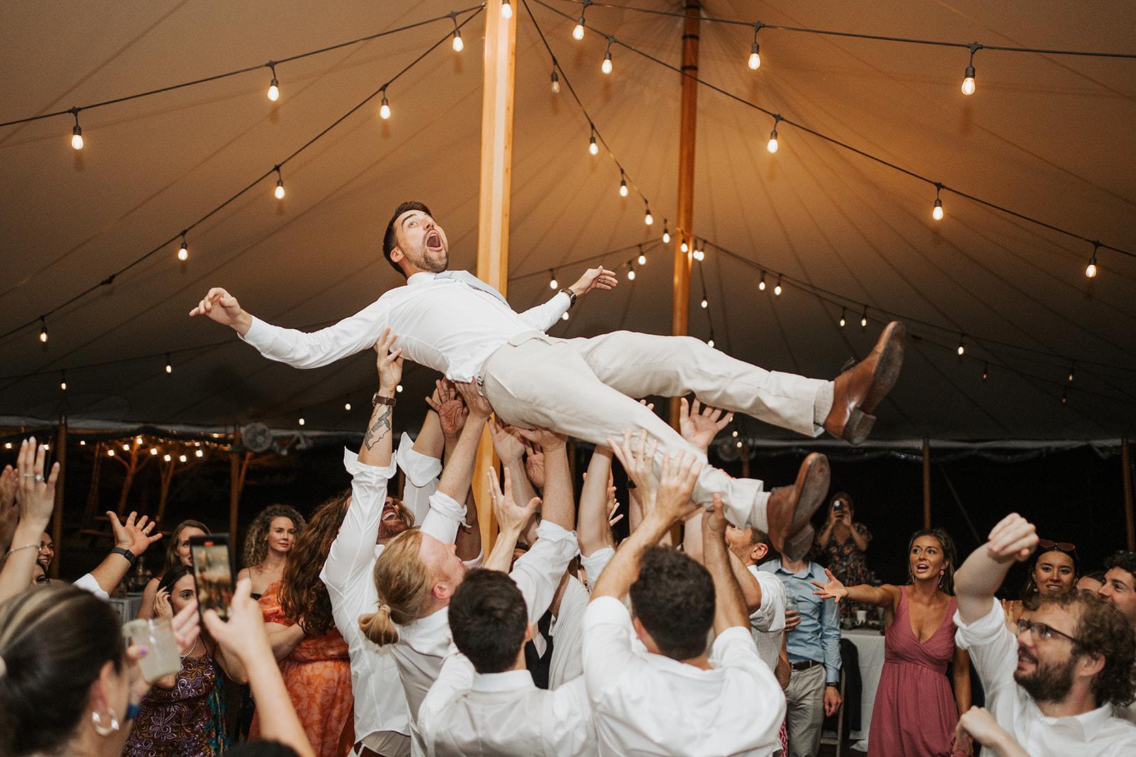 I cannot say enough good things about Blooming Hill Farm! From the stunning location, to the amazing staff, the incredible food, and the overall energy – everything was beyond what we could have dreamed of. We instantly fell in love with the beautifully curated, elegant farm setting. From the back field ceremony locations to the gorgeous white canvas, wooden-beam tent (and everything in between!), it was pure magic. We actually said yes to BHF without even trying the food first—and wow, we are still getting compliments on it from guests almost a year later! The fresh, farm-to-table dishes were absolutely unforgettable. The Staff: We were so lucky to work with Kate as our point person. Wow—she was outstanding. Having worked in the wedding industry myself, I know how rare it is to find someone like her. The attention, care, and professionalism she brought before, during, and even after our wedding was such a relief. From countless emails and planning meetings to the weekend-of setup, Kate and her team handled everything with ease. She made our day so smooth and peaceful—I truly couldn’t imagine working with anyone else. As a very DIY bride, I came in with lots of personal touches—guest book, memorial table, reception centerpieces, and more. Kate didn’t miss a beat. She and her team set everything up beautifully and brought my vision to life with so much care and thoughtfulness. I knew once I handed everything over, it was in the best possible hands. Our day was perfect. I know so many people say that, but I wholeheartedly believe Kate and the BHF team played a huge role in making it so. I cannot recommend Blooming Hill Farm, the team, and especially Kate enough!