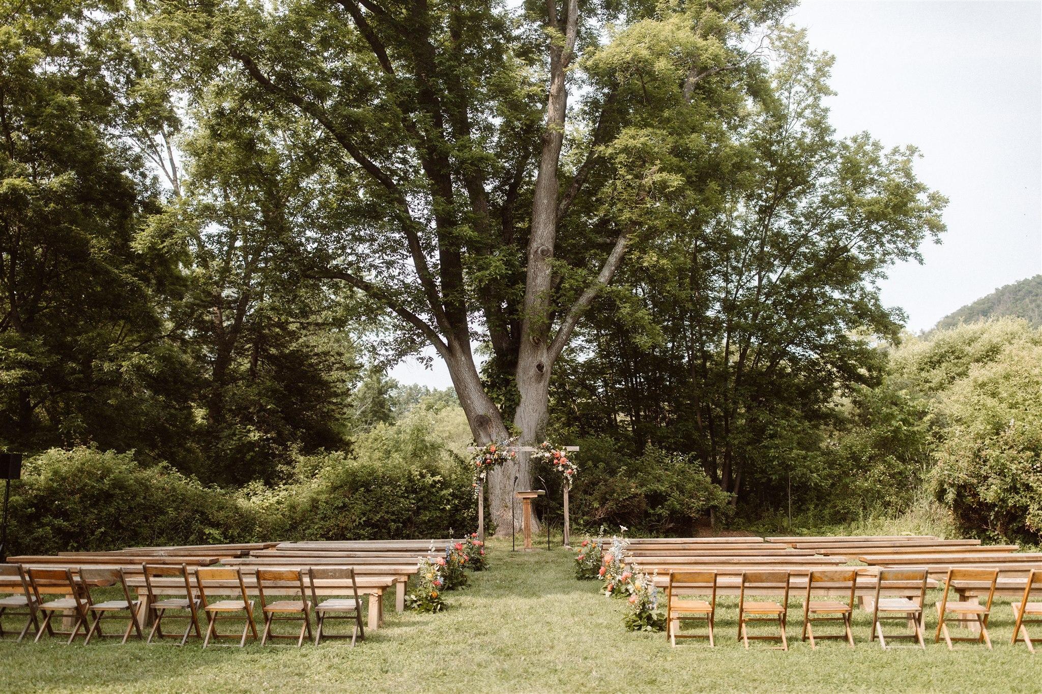 Have your ceremony in front of an historic old-growth hickory tree surrounded by wildflowers and the Hudson Valley’s lush foliage.