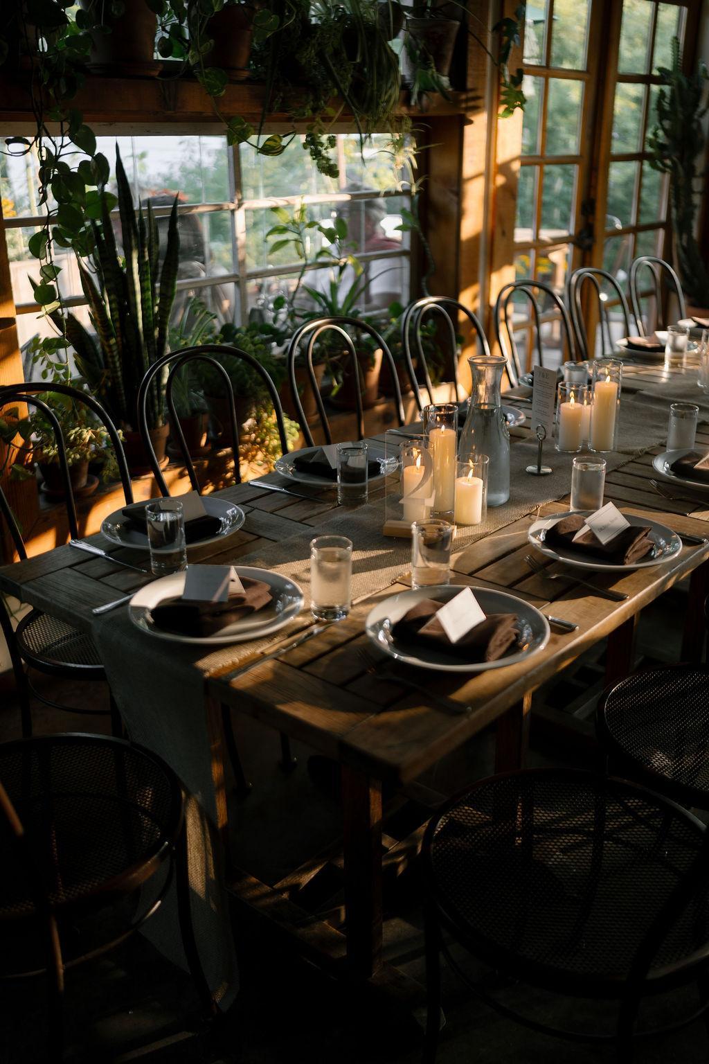 Featuring floor to ceiling windows and six french double doors, the restaurant calls to mind a glass greenhouse with warm wooden fixtures and over a hundred potted plants. Perfect for intimate receptions and elopement dinners, or as an alternative cocktail hour, the restaurant can also host engagement parties, rehearsal dinners, and showers.