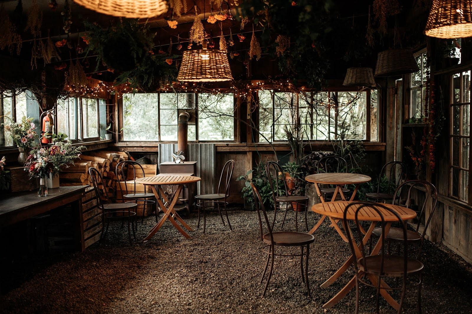 Enjoy drinks and an intimate dinner in our enchanted greenhouse-style event space.