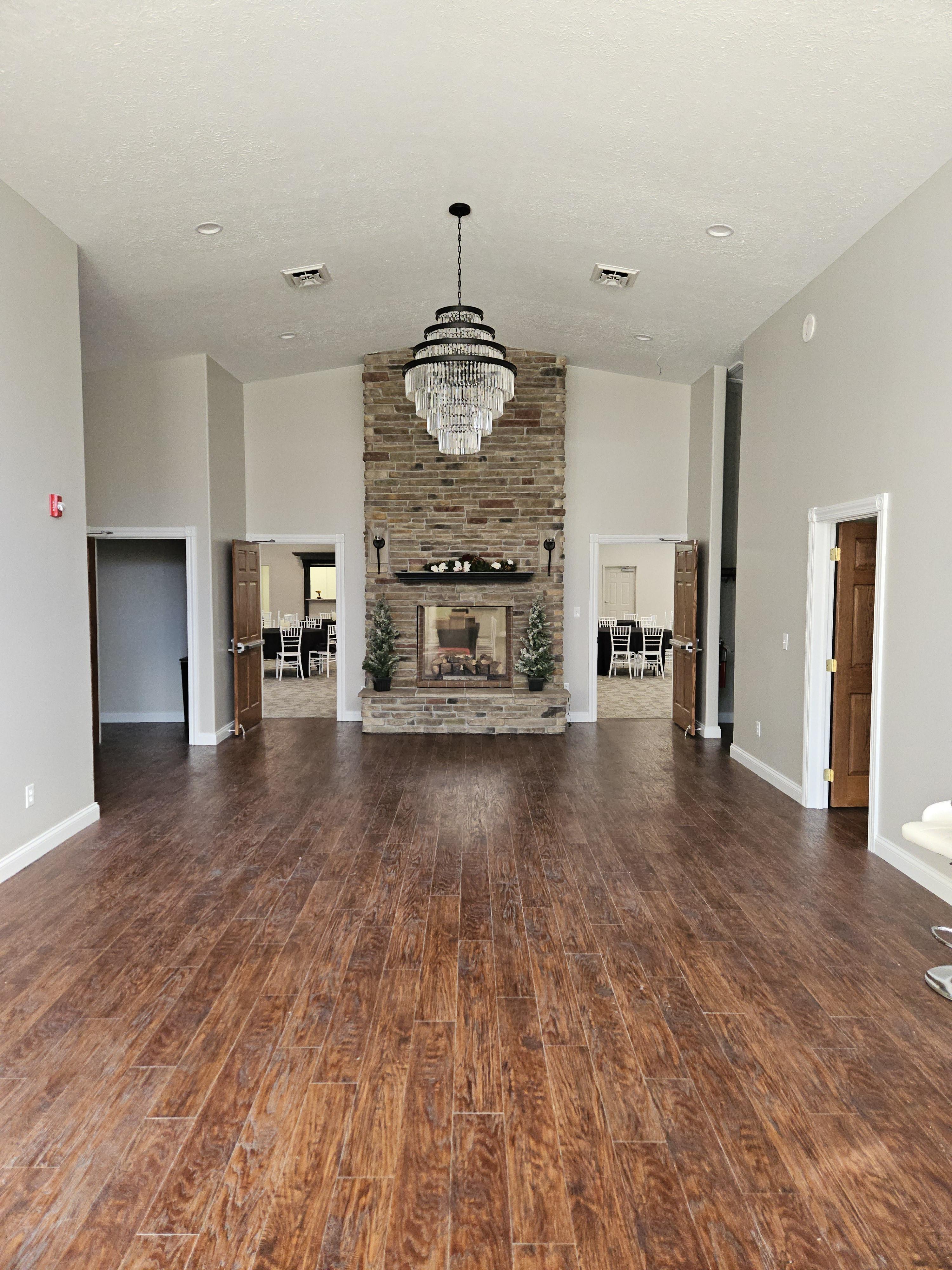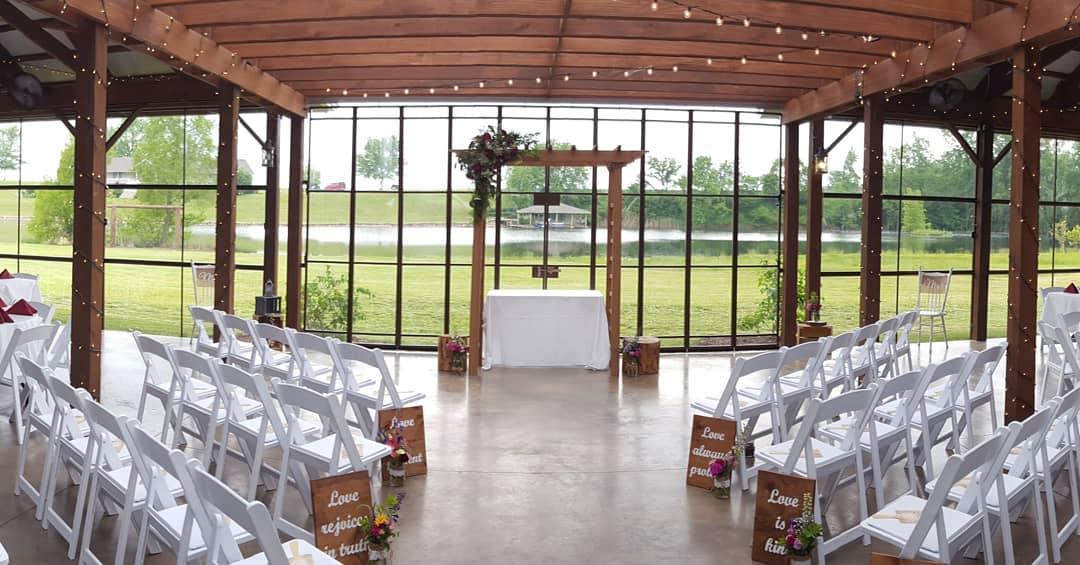 Unique wedding pavilion with rustic features, cathedral rafters and romantic bistro and twinkle lights throughout that makes it a one-of-a-kind MUST SEE venue.