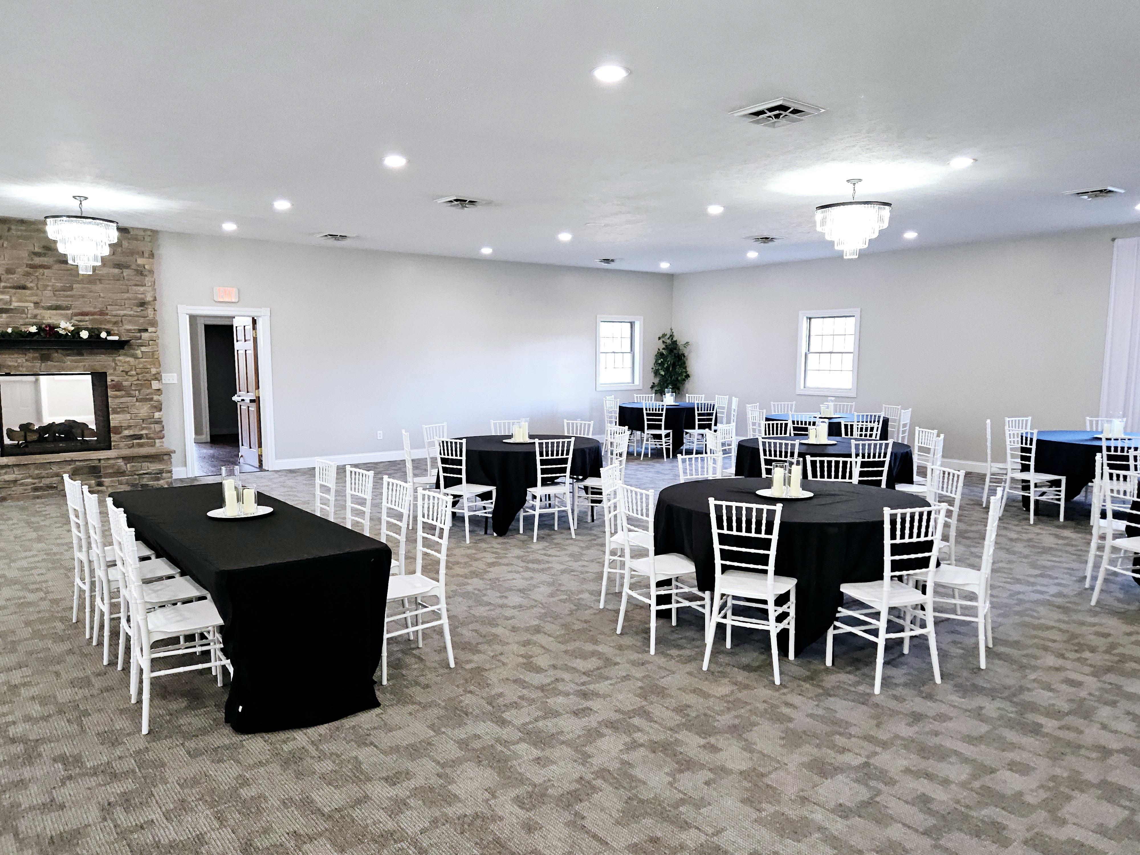 Lovely Bridal Suite Groom's Quarters (w video games!) Spacious Elegant Ballroom Gorgeous Fireplace Large Outdoor Pavilion Picturesque Outdoor Ceremony Area Bar Service Available Tons of Great (and affordable!) Menu Options Pretty Wooded/Farm Location Full Service Staff