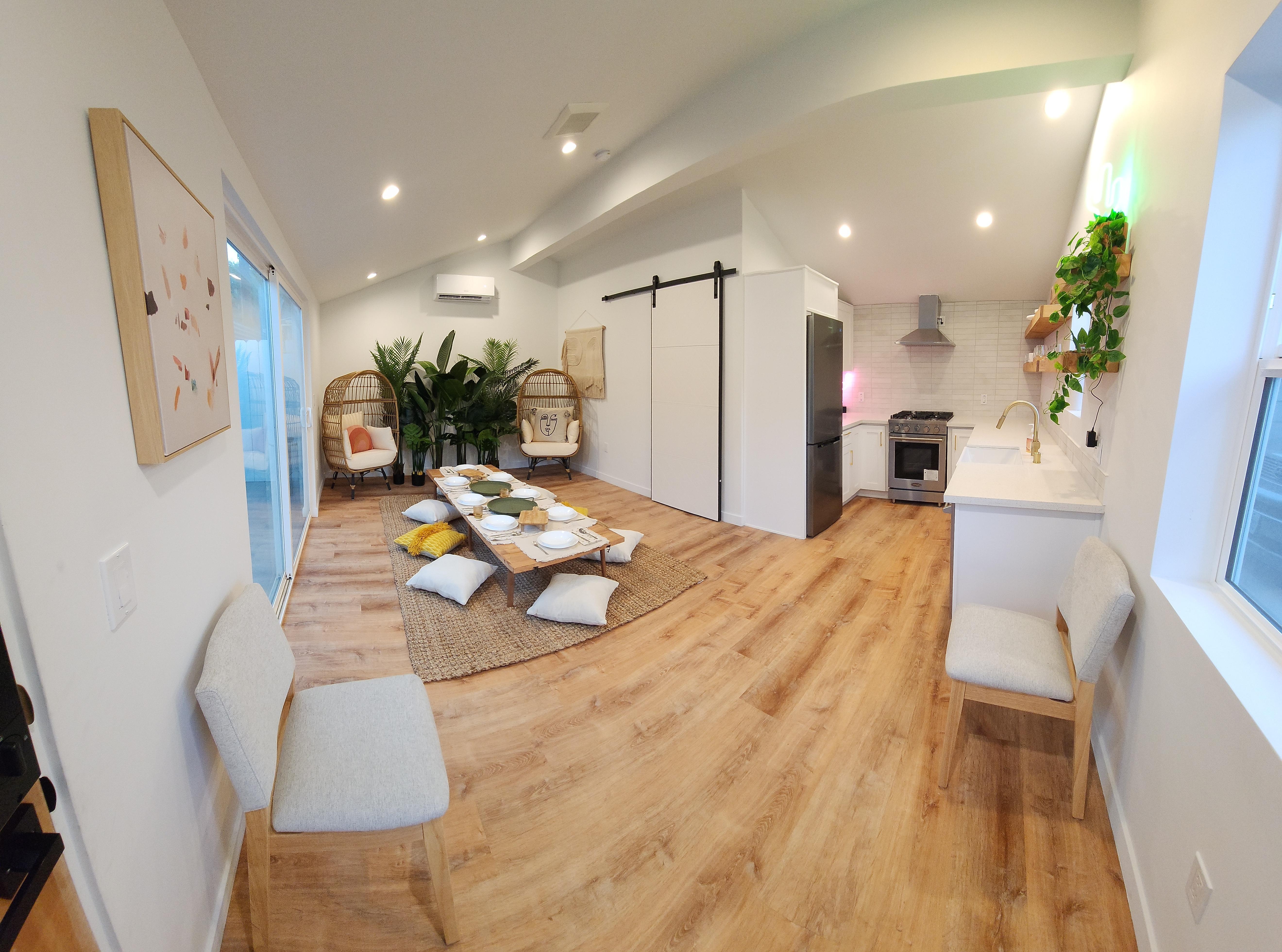 - Dimmers for customizable lighting - Full kitchen for prep, cooking, and food display - Full bathroom, including laundry if needed - Coffee and tea making station - Backdrop to enhance photoshoot ambiance - Instagrammable setting to capture beautiful moments