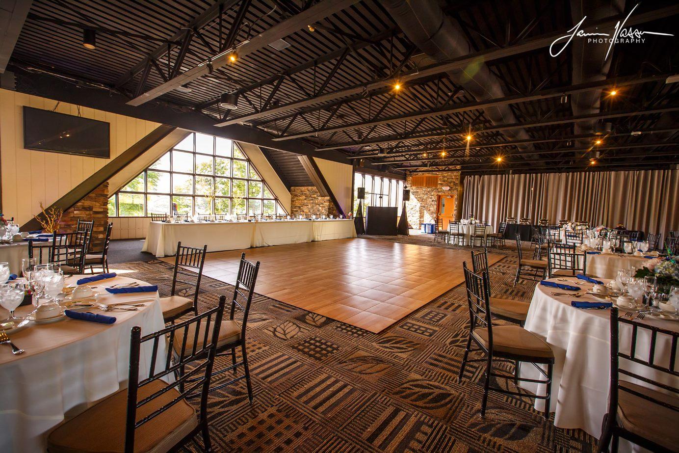 Blue Mountain’s Platinum Wedding Package includes a 5-hour reception, 4.5-hour open bar, cocktail hour, and a Blue Mountain Wedding Cake. Choose four hors d’oeuvres, one salad course, and two entrees. Per Person Cost is all-inclusive and prices change yearly.