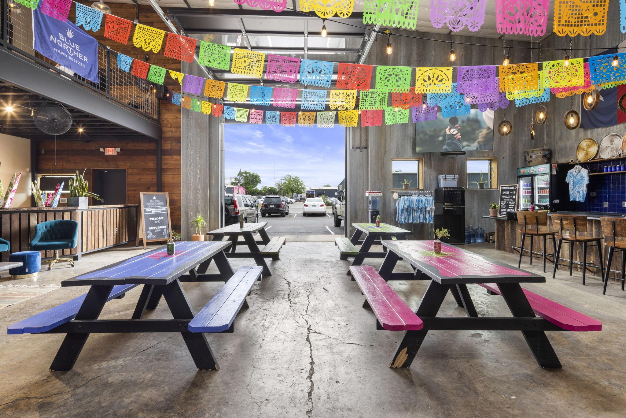 The Blue Norther Tasting Room is a Ranch-styled warehouse and music venue with plenty of open space, indoor and outdoor capacity, a raised stage, conference room, and 1,000 sqft. mezzanine. A newly renovated industrial warehouse, it's the perfect true-to-Austin experience for visitors and locals alike. The layout is very flexible, and can be changed according to your needs. It's the perfect casual spot for a welcome party or laid-back reception!