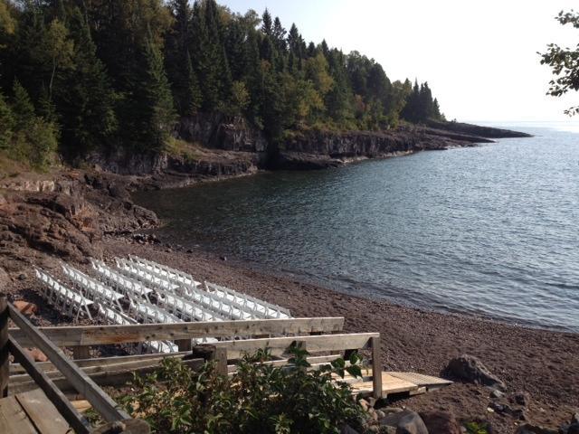 Never miss a wave while having your wedding ceremony on our Beach Patio. It features incredible views of Lake Superior and all that Bluefin Bay has to offer!