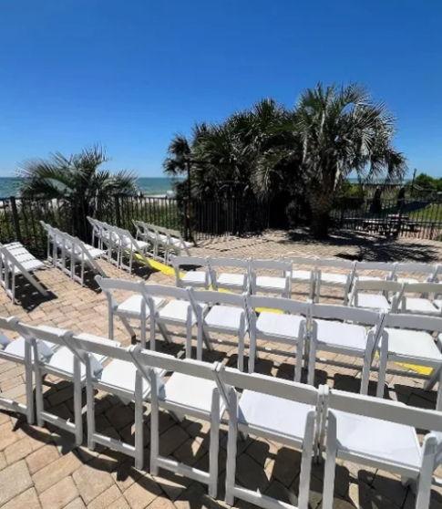 We are your perfect destination or local location for your next dream wedding. Bluewater Oceanfront Resort is at the southern end of the Grand Strand. We are 10 minutes from the Myrtle Beach International Airport, and conveniently located to Market Common, Broadway at the Beach, as well as other area attractions. Our large 3rd floor Atrium Room can accommodate up to 120 guests with access to our atrium for cocktail hour, food or beverage display’s. Located on the 15th floor, the Blue Eyes Lounge can accommodate up to 55 guests and offers spectacular views of the Atlantic Ocean and Myrtle Beach. Room rentals include tables and chairs. Our rentals also give you access to our beachfront patio or our private beach area for your ceremony. We can make your planning process easier with our additional services and list of vendors. We have an onsite restaurant and outside caterers are permitted. Please visit our website and Facebook for more information!