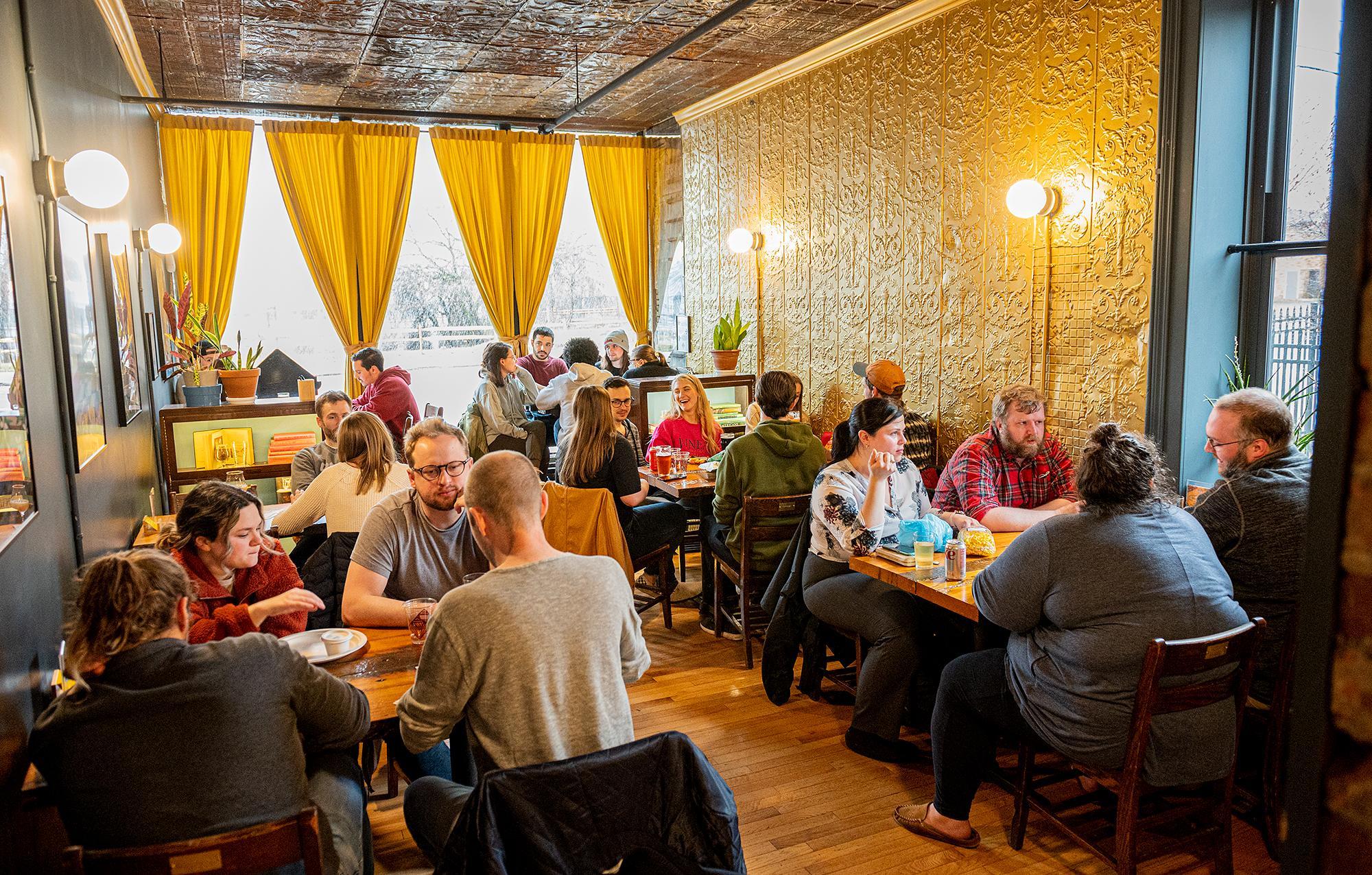 One of our goals at bookhouse is to be a useful space for our community. Whether you’re planning a party, fundraiser or performance, we’d love to talk!In addition to our beers and ciders, we offer wine, spirits, and sodas. Hosts can open a party tab or have guests pay for their own drinks. All drink orders must be placed at the bar - we do not offer table service. We have a limited food menu but will gladly work with any caterer. Feel free to bring in outside food as well. In general, the Tin Room is available for rental during all business hours except Wednesdays from 6-10 pm when we have our weekly trivia. If you are interested in renting outside of business hours or are interested in renting the whole taproom, please inquire further.