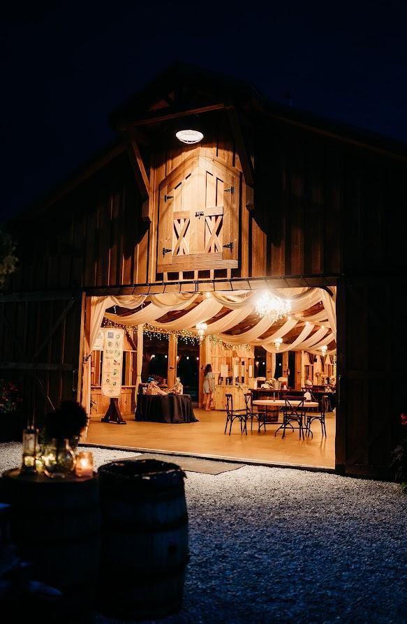 Together with the rustic features of the barn and the beauty of nature, the romantic atmosphere provides a secluded space for family and friends. This enchanting rustic Venue features a cozy ambiance with chandeliers and covered porches adorned with Edison bulb lighting for cocktail hour. With the stone fireplace and organza draping, we guarantee our Venue makes an enchanting experience that will leave a lasting impression.